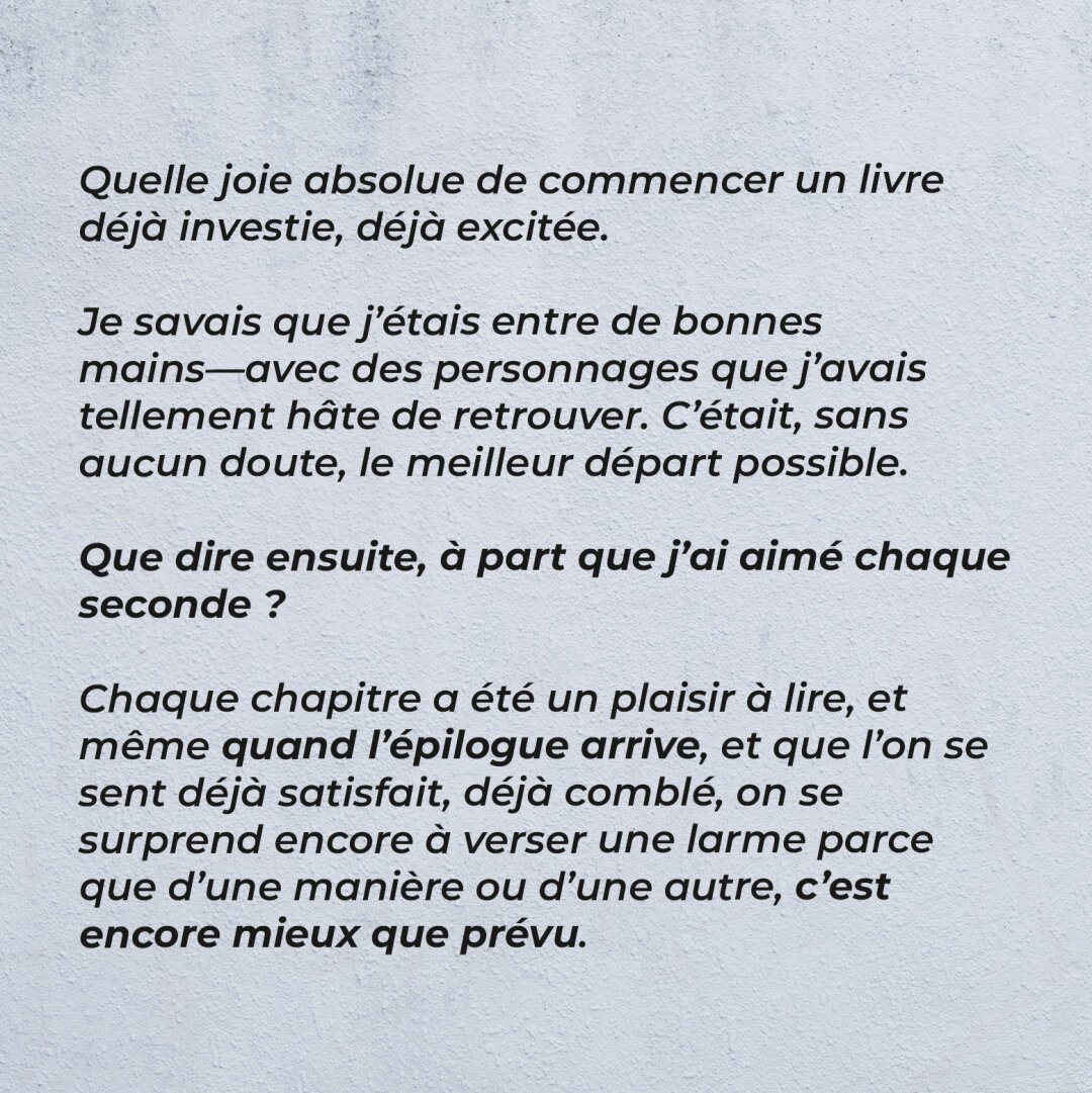 What an absolute delight to begin a book already so invested and excited. I knew I was in good hands—with characters I was already so eager to follow. It was truly the best possible start.