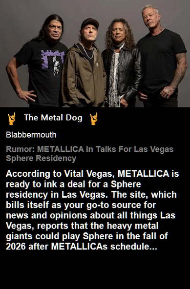 METALLICA Reportedly Eyeing Las Vegas Sphere Residency For Fall 2026