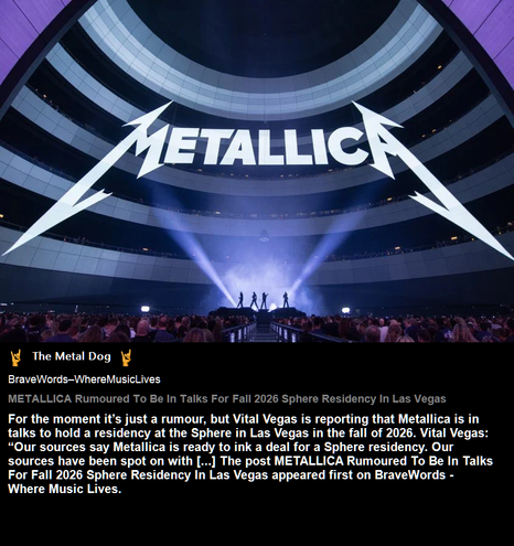 Well this would rule. METALLICA Reportedly Eyeing Las Vegas Sphere Residency For Fall 2026 appeared first on Metal Injection.