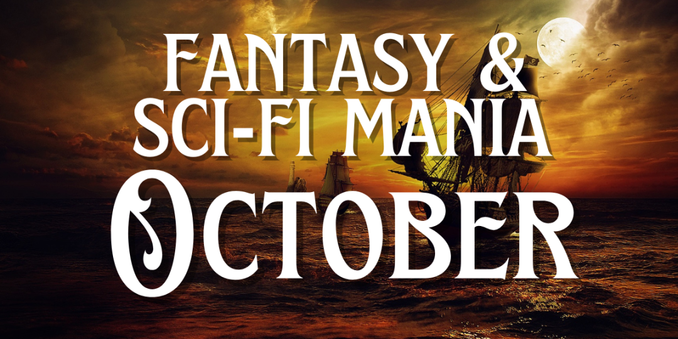 Image of a bookshelf and text fantasy & scifi october freebies
