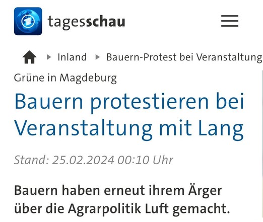 Wenn es irgendwann Verletzte oder Tote auf Seiten der Grünen gibt, werden die anti-grünen Schlagzeilen-Aktivisten der #Tagesschau und von #BerlinDIREKT & #BerichtausBerlin durch ihre permanente Verharmlosung der durch die CDU protegierten #FaschoBauern mit Schuld daran tragen: