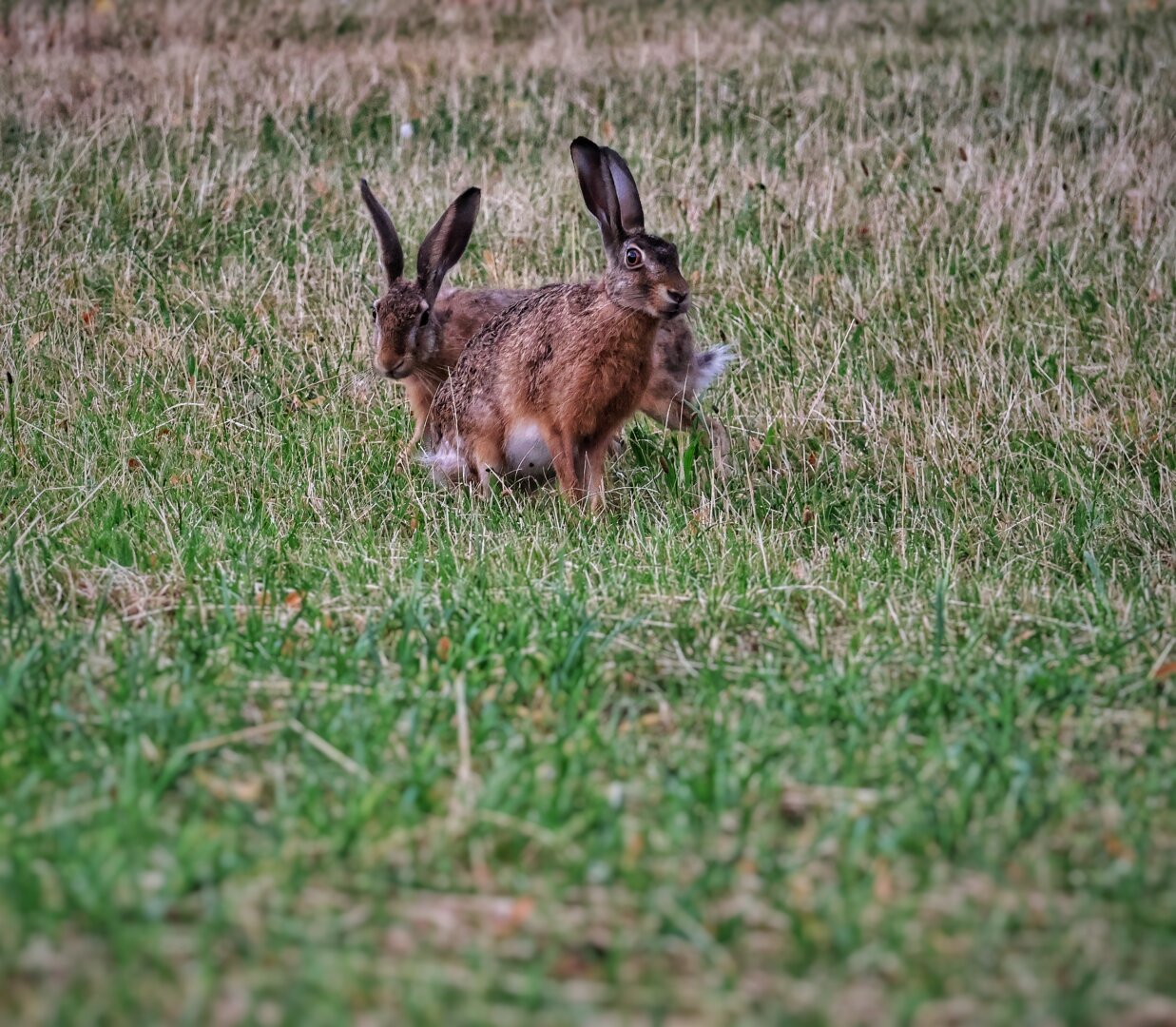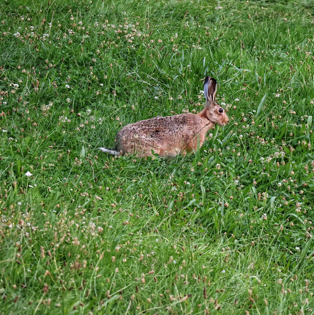 Ein #Hase direkt vor dem Hochsitz - nein, den schiessen wir nicht, aber staunen, wie er auf die Rufe der Greifvögel reagiert 😅