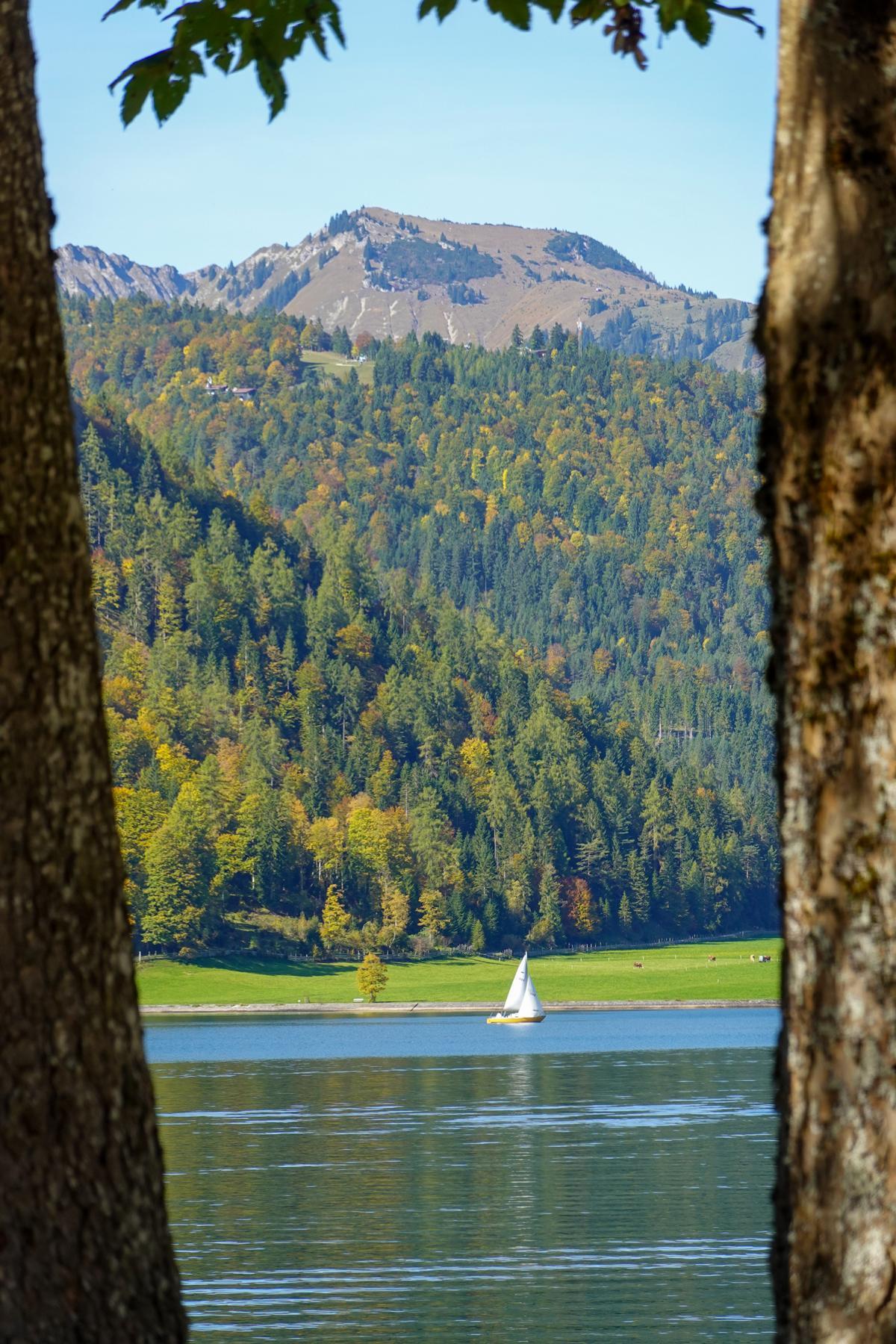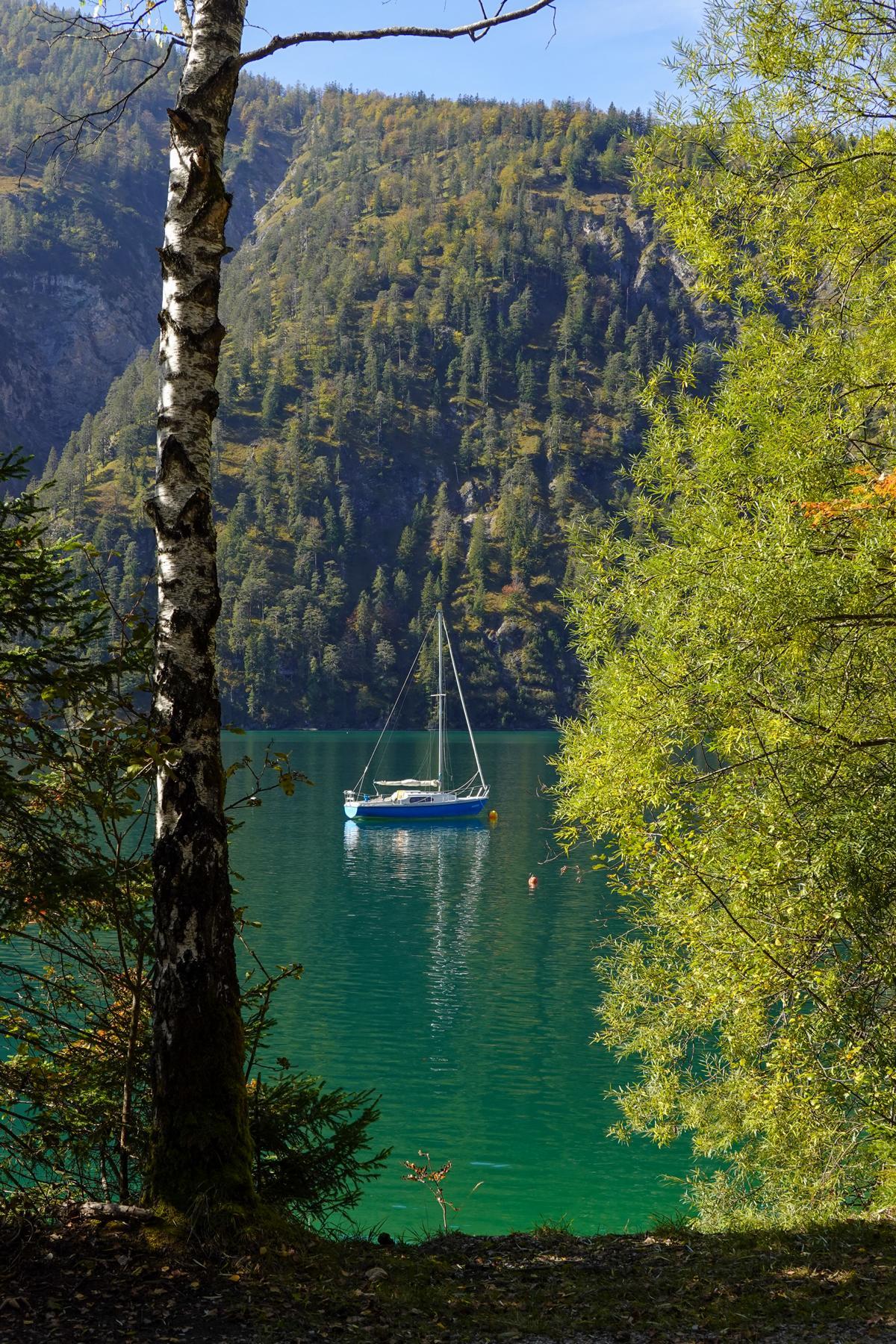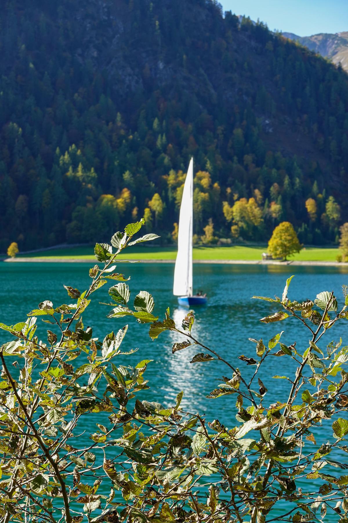 Schifferl schaun & #Fernweh zähmen ⛵✨ Gestern am #Achensee: Sonne über türkisblauem Wasser. Glitzerwellen zwischen Ahorn, Birke & Lärche; Segel, die „Tirol“ mittendrin. Berge im Herbstkleid, Blätter wie Konfetti. 🍁☀️🏔️ #Tirol #VisitTirol #Herbst #Segeln #Alpenliebe #Seenliebe #travel