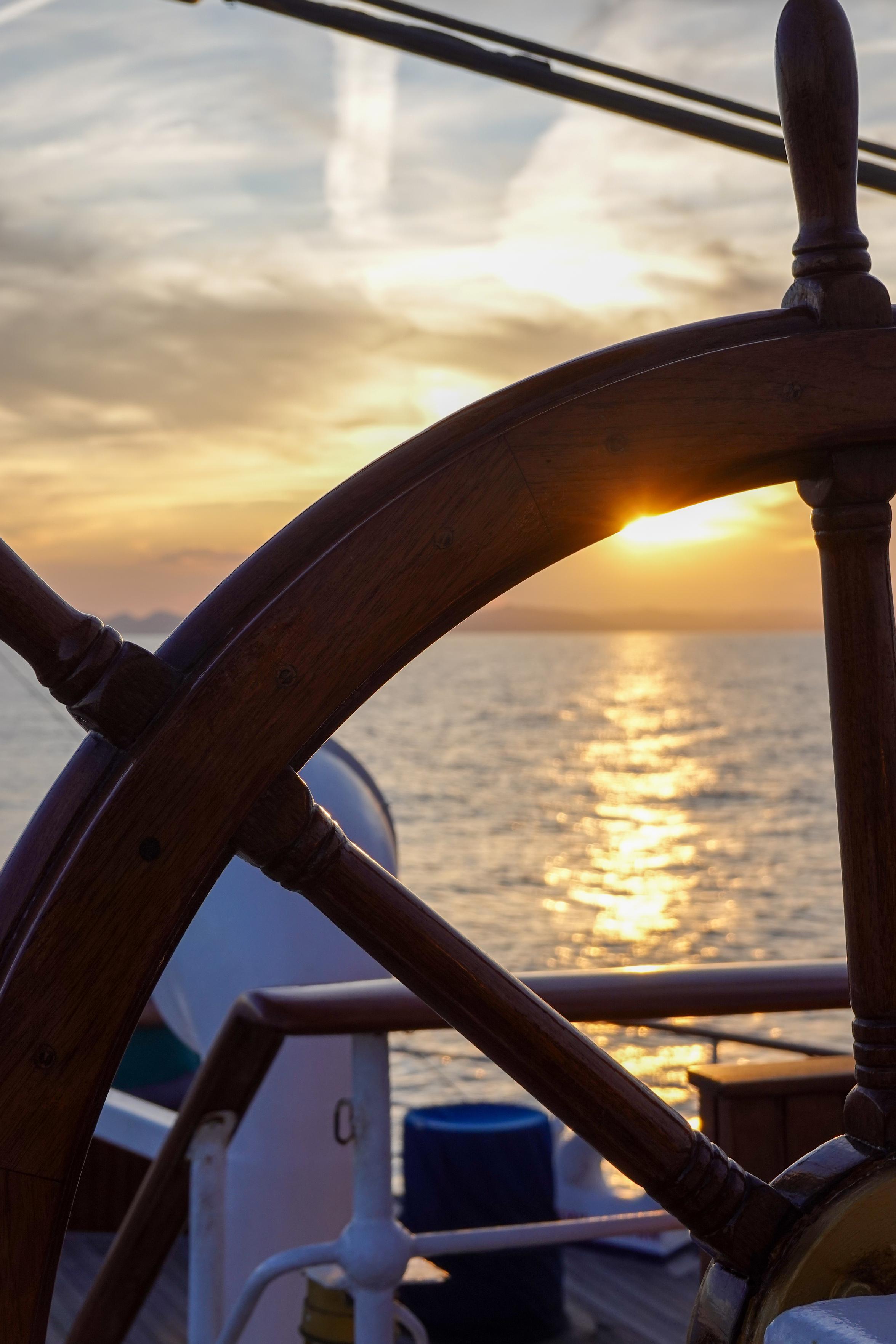 Bilder sortieren von meiner #BucketList #Kreuzfahrt im Frühjahr: Dieser Moment am Ruder der #RoyalClipper bei #Sonnenuntergang nahe #Ibiza. 🌅 Das Meer still, der Himmel golden, nur das Knarren der Masten. Da wusste ich: Ich bin genau da, wo ich sein soll. 🌊✨ #Fernweh #travel