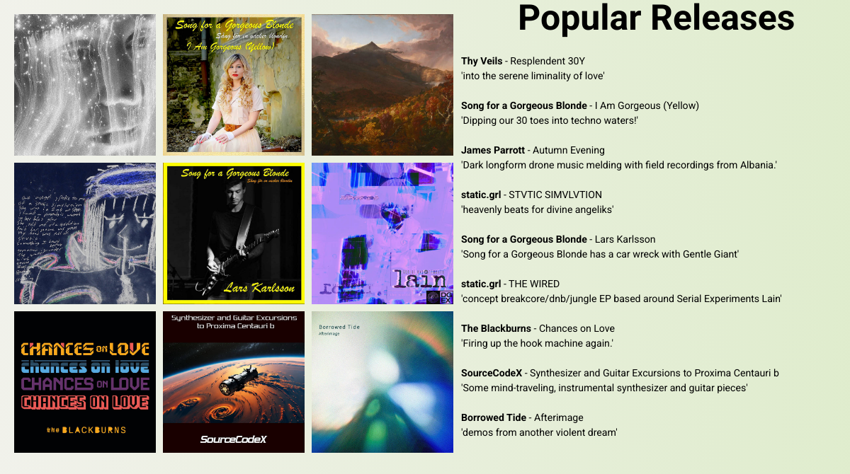 #music #darkambient #drumandbass #foley #fieldrecording #obscure #droneambient #noiserock #melbourne #freejazz #newage #fieldrecordings #electronicmusic #synthrock #triphop #indiepop #boombap #hyperpop #aggrotech #powerpop