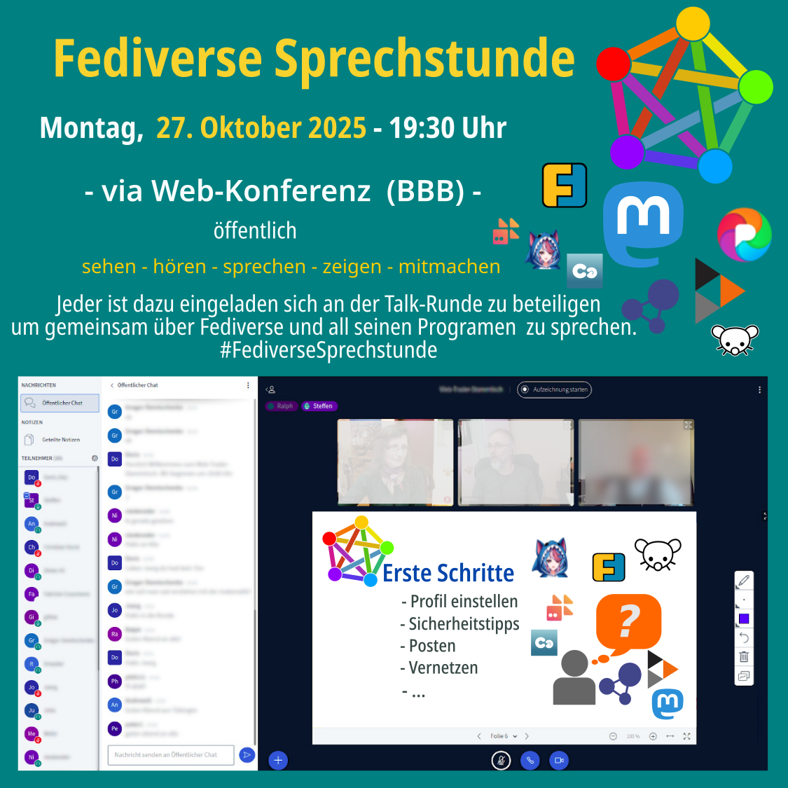 #Fediverse #Mastodon #Hubzilla #Friendica #FediverseSprechstunde