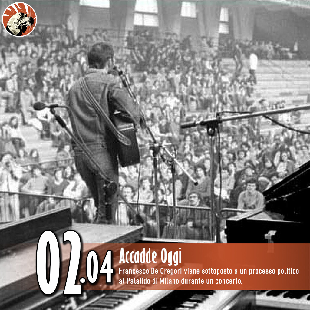 #AccaddeOggi, #2Aprile: #FrancescoDeGregori viene sottoposto a un processo politico al #Palalido di #Milano durante un concerto. https://bit.ly/2JxxH9j