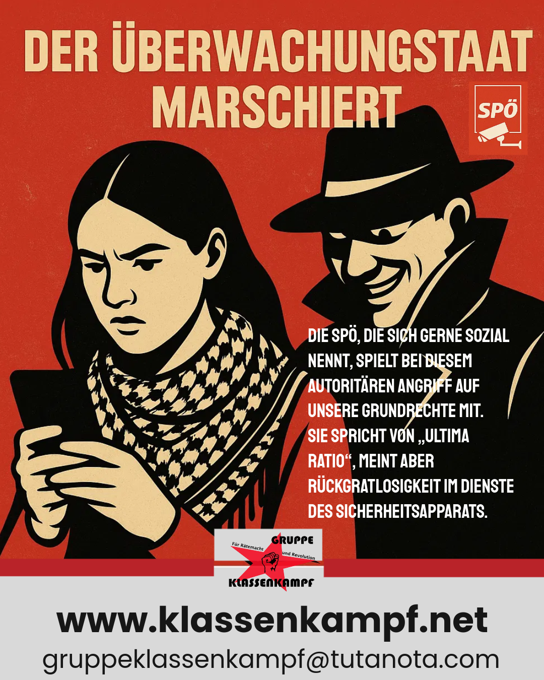 Und die SPÖ? Sie schweigt nicht nur, sie stimmt zu. Verrat an der Arbeiter*innenklasse und an allen, die sich gegen dieses System auflehnen! #Überwachung #MessengerÜberwachung #SPÖ #SPÖSkandal #KarnerÜberwachtDich #Bespitzelung #FreiheitStattAngst #Klassenjustiz #VerratVonOben #KlassenkampfJetzt