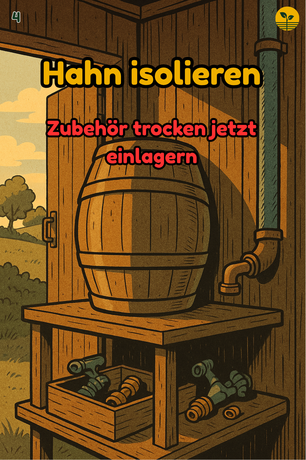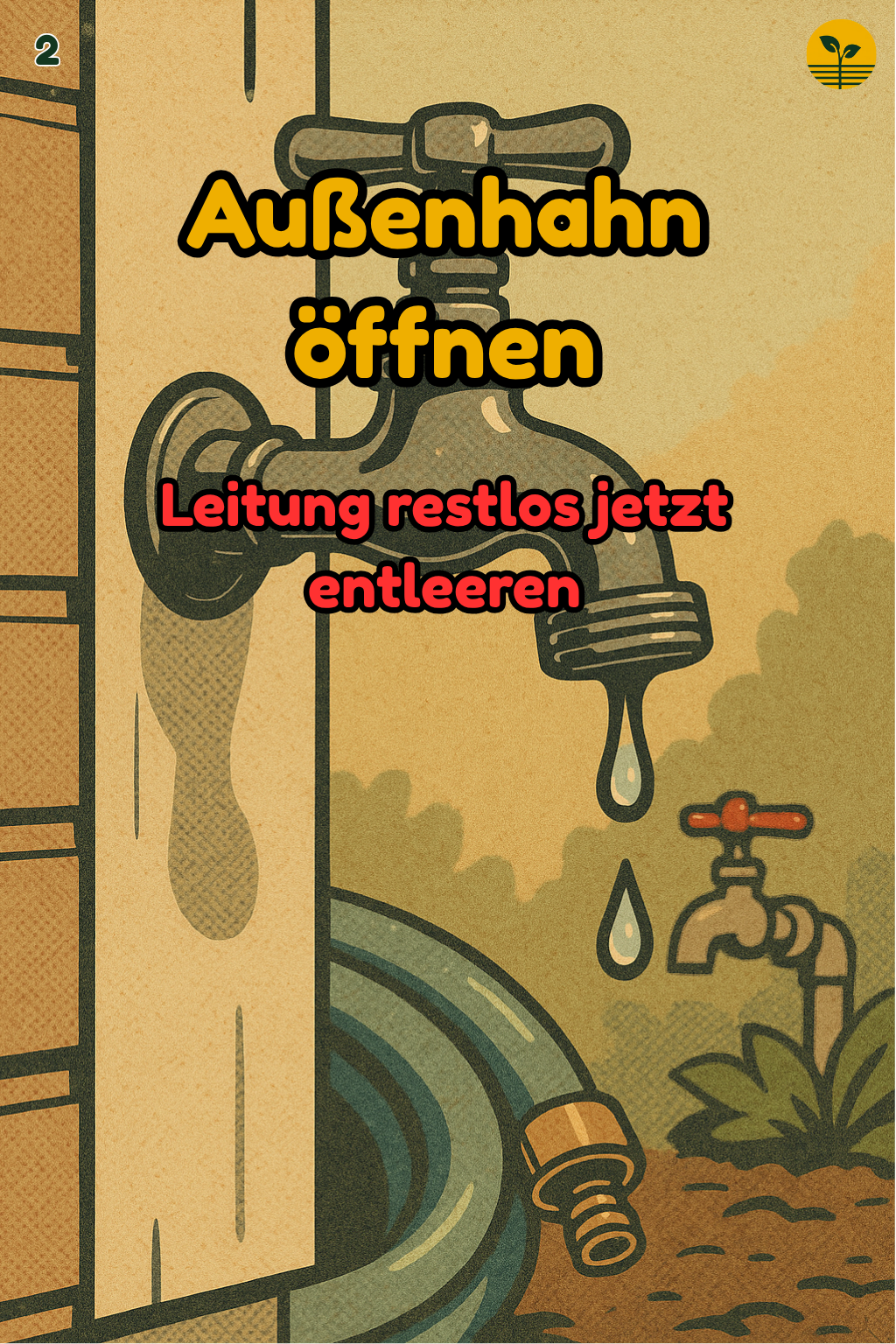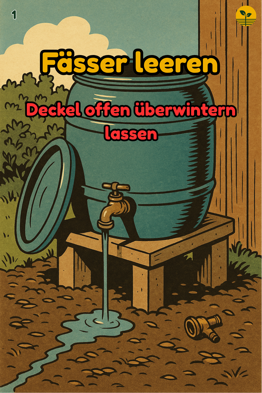 Gartenwasser in 30 Minuten frostfest: Fässer leeren, Außenhahn entleeren, Schläuche aufhängen, Zubehör einlagern. #Garten #Frostschutz