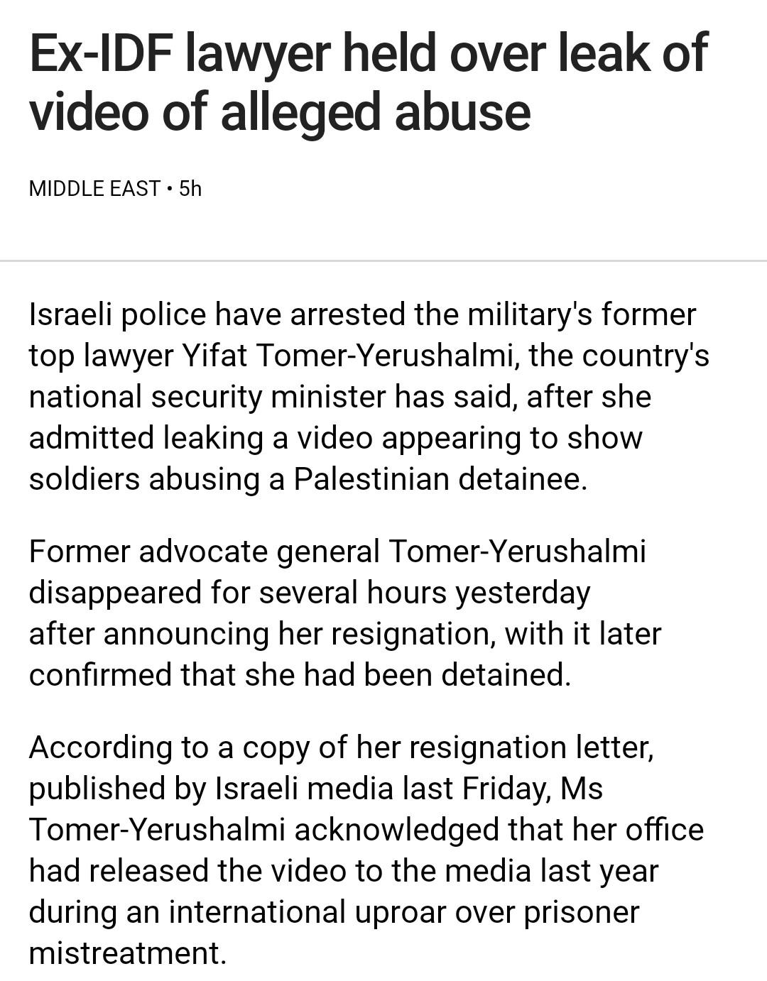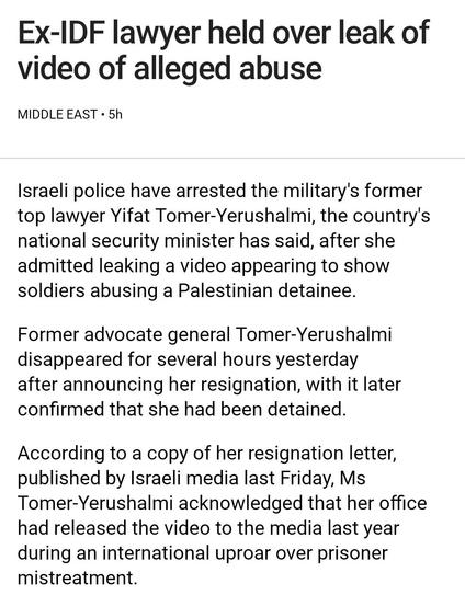 The Israeli military regime lawyer who was the whistleblower on the horrific abuse of a Palestinian hostage kidnapped by the IDF has been arrested. They get found out on their lies, human rights abuses, and psychological, physical, and sexual assaults and decide the best thing to do is to dissappear the one who publicised their crimes.