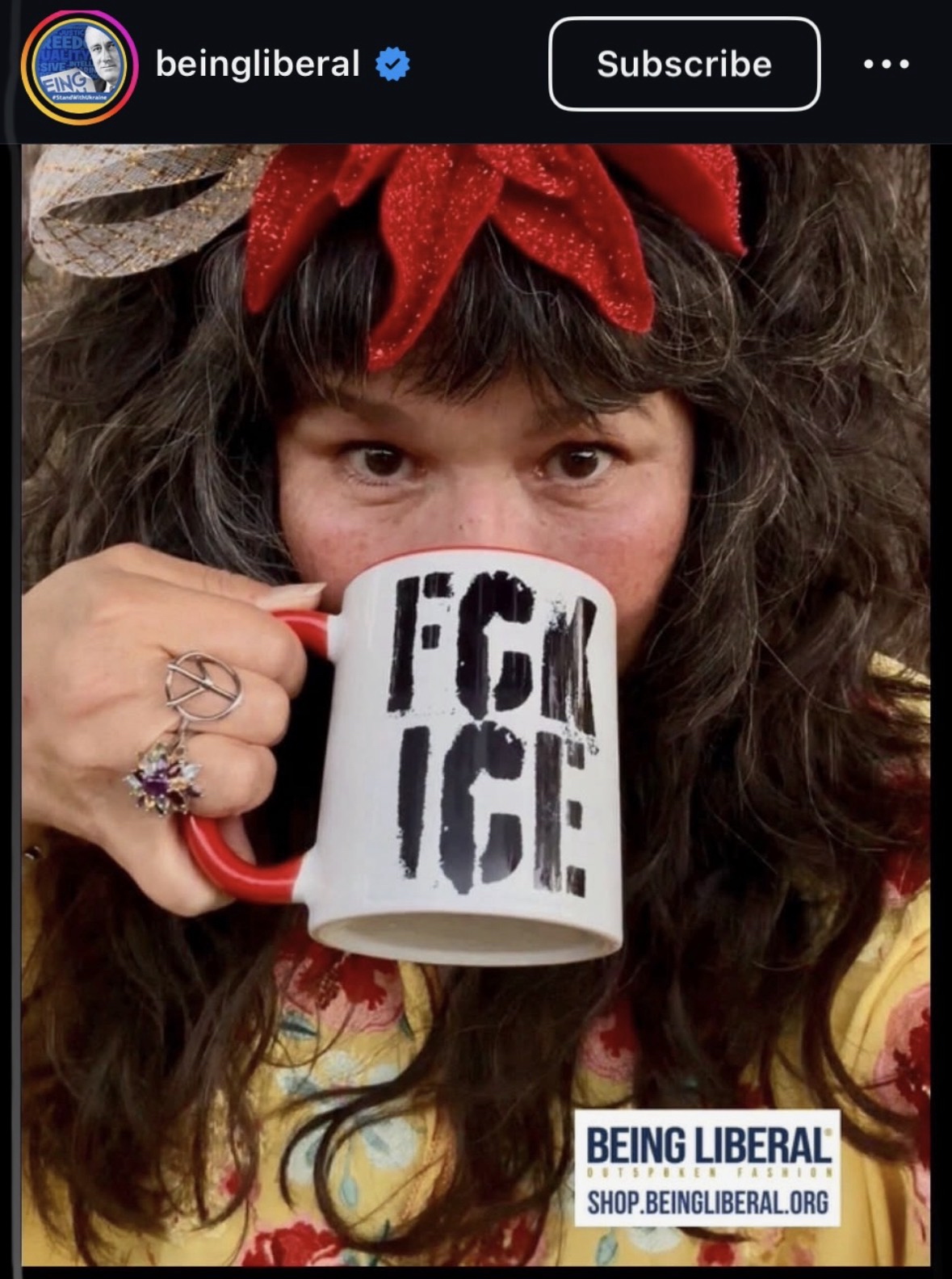 I’ve gotten so many insanely good items at shop.beingliberal.org! As a repeat shopper, I can guarantee the tees are soft, the buttons are current, and the mugs, THE MUGS, are fabulous! Check them out before your next rally/event, or wear your tee as you #GOTV (many colors to choose from)! /x