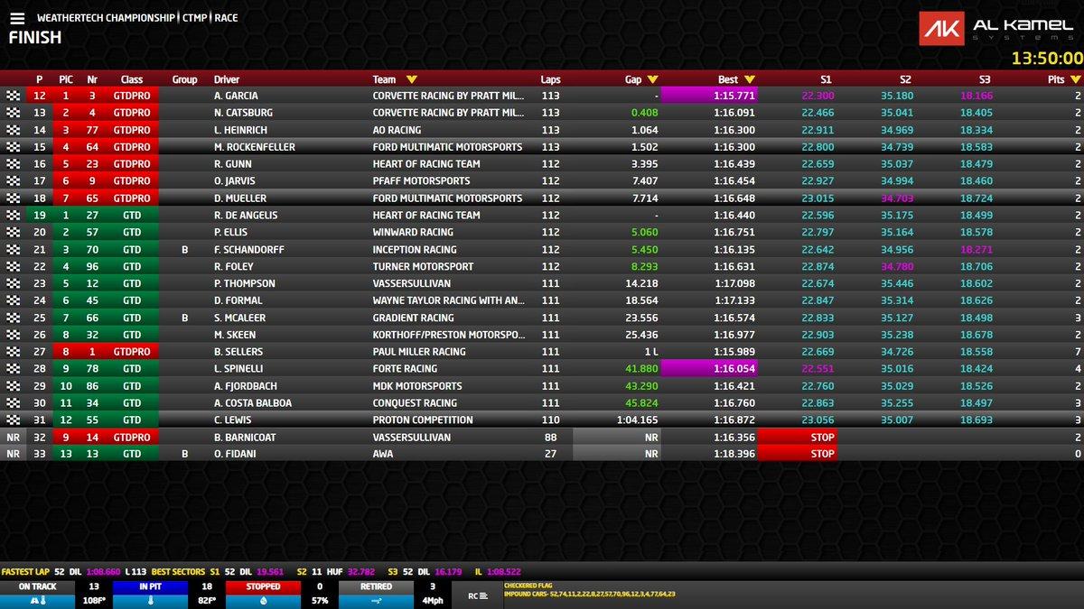 The 2h40 of the #ChevroletGrandPrix finished, 4th place for the #64 Mustang with Rockenfeller at the wheel in #GTDPro, 7th for the #65 with Mueller, in #GTD, the Proton mustang is penultimate #IMSA #CTMP #BredToRaceFP