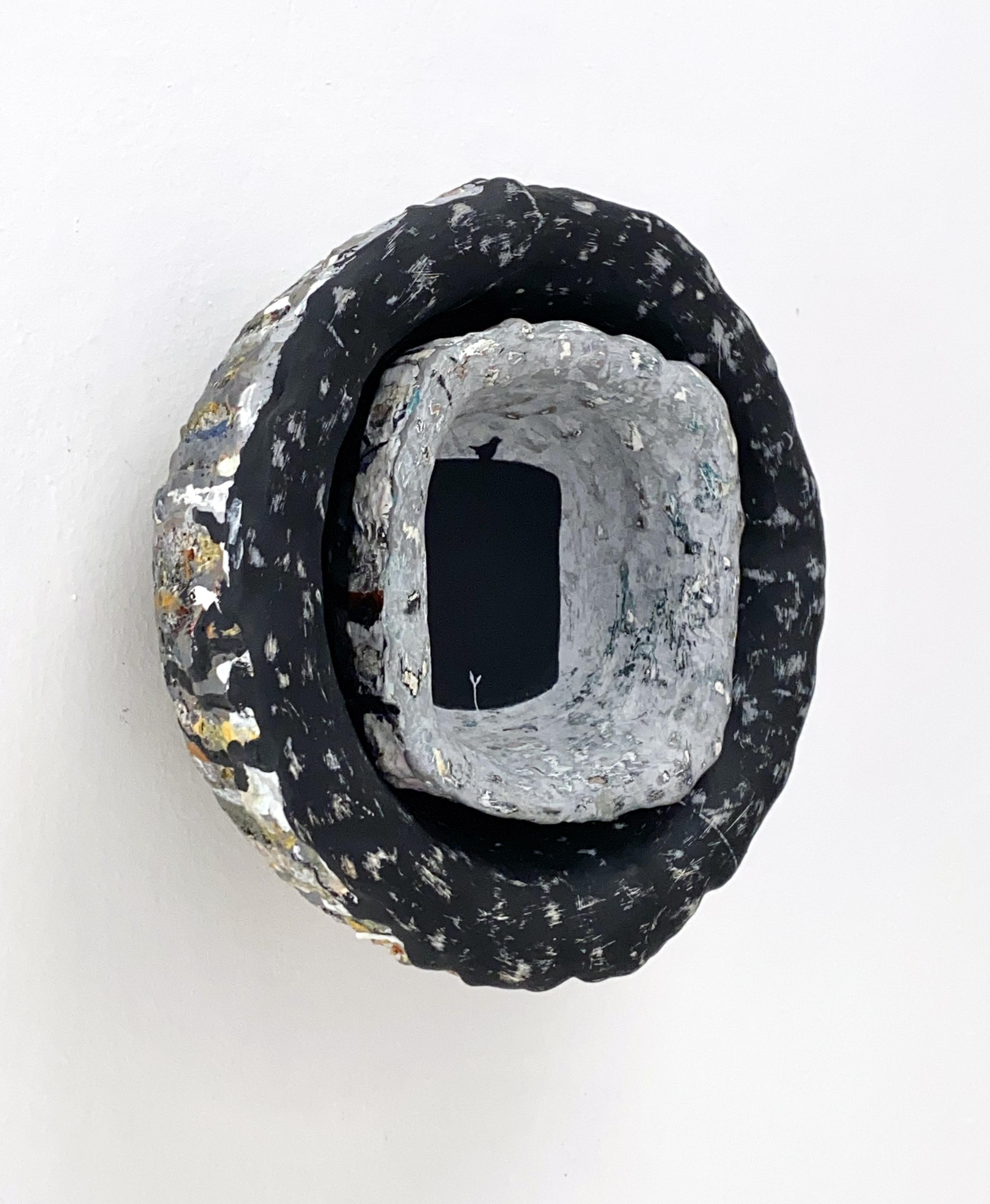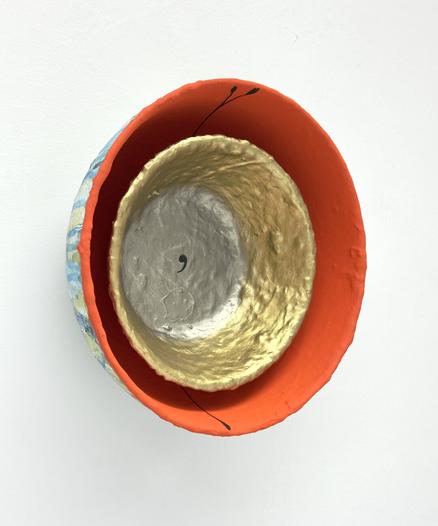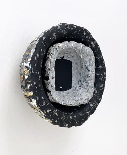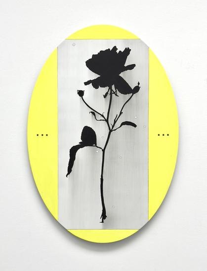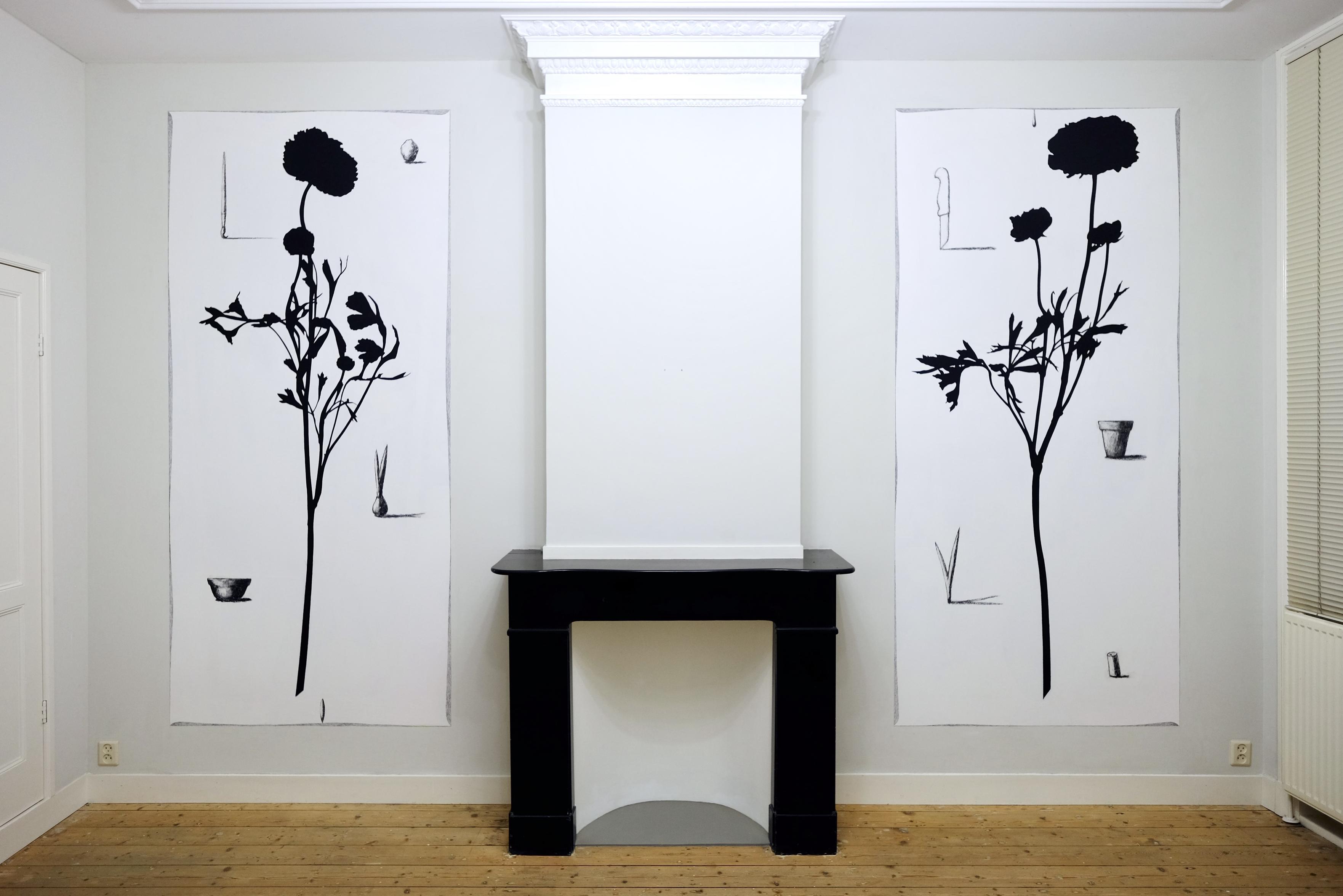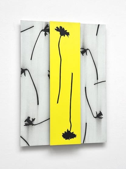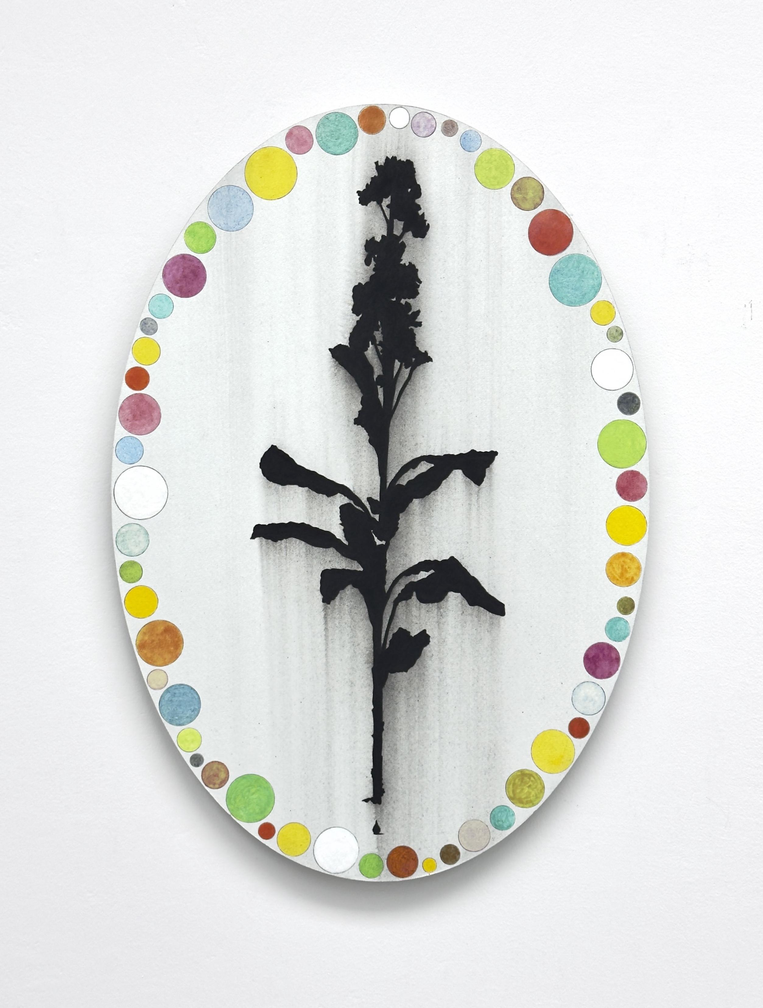 ‘July memories, now the tribute to our very first hollyhock!’, 2025, (conté) pencil and acrylic on aluminium, 44.5 x 31 cm.