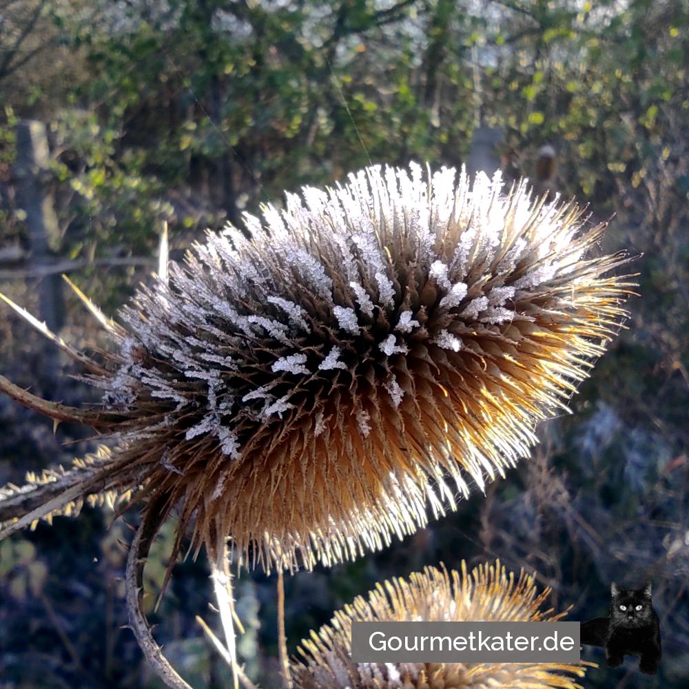 Weberkarde mit Winter im Garten.