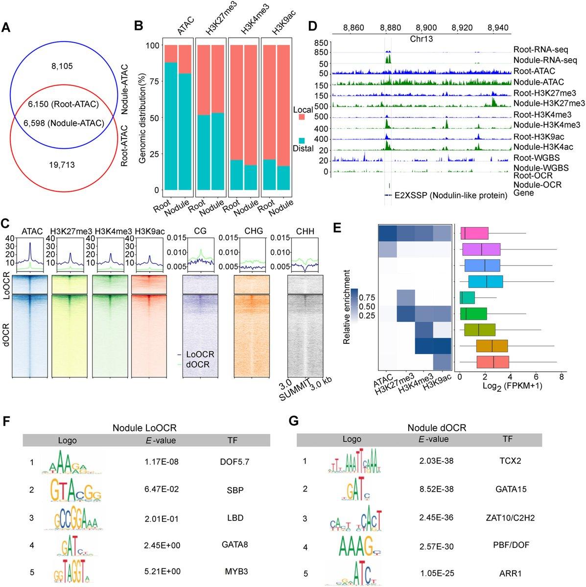Characterization of OCRs and epigenome markers in peanut roots and nodules.