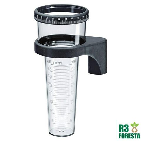 El pluviómetro consta de un recipiente cilíndrico con una abertura superior que captura la lluvia. El agua recolectada se mide utilizando una escala graduada que permite determinar con precisión la cantidad de precipitación acumulada en milímetros (mm).