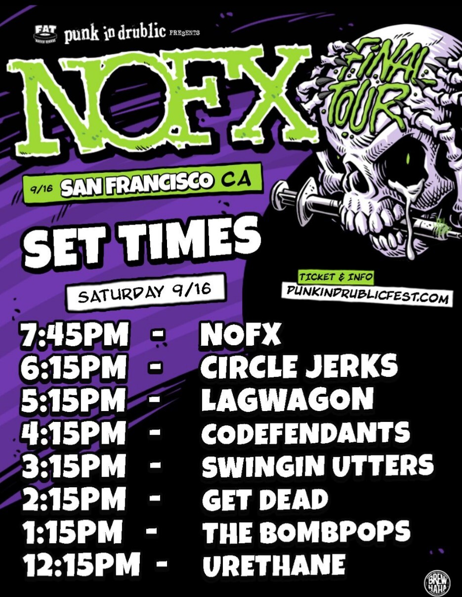 NOFX have announced the details for their upcoming final Toronto and Edmonton shows. Descendents, The Interrupters, Circle Jerks, The Suicide Machines, Subhumans