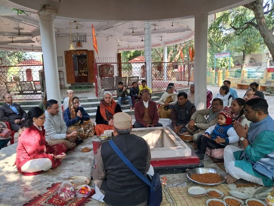 2️⃣ 🕯 Lighting a lamp before Krishna’s image and Gita: