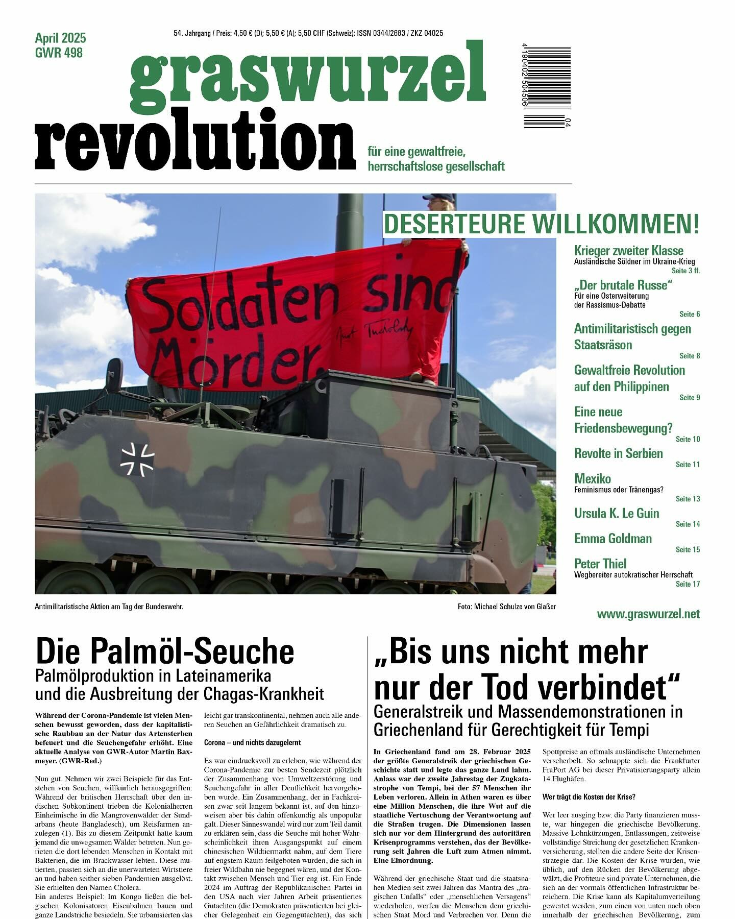 Die #Graswurzelrevolution Nr. 498 (April 2025) bekommt Ihr im Bahnhofskiosk, Buchladen, in Infoläden, linken Kneipen & Zentren oder - am besten - direkt bei: https://www.graswurzel.net/gwr/service/abo/