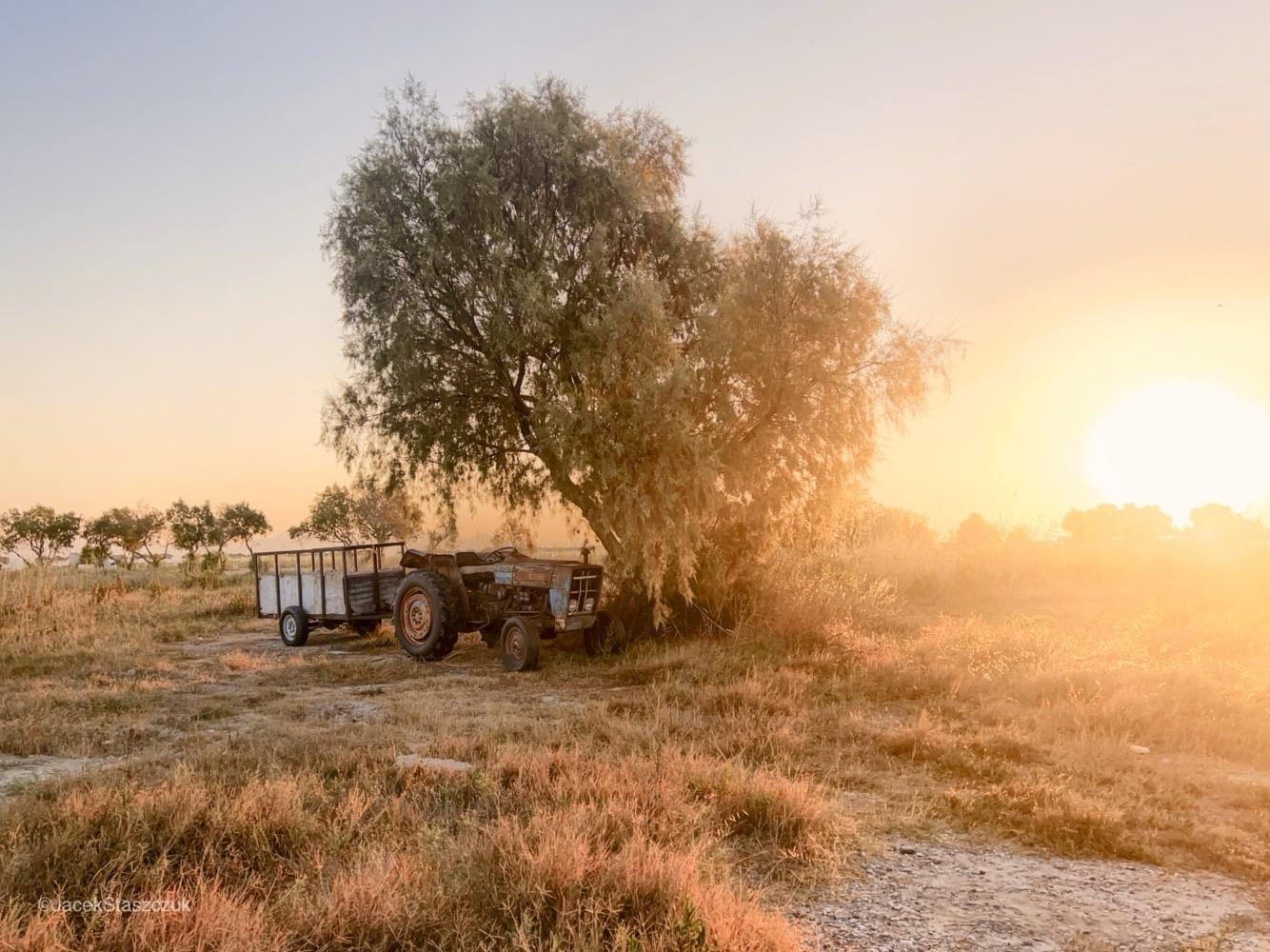 Traktor przed domem zaparkowany pod drzewem ale już nierozładowany 🫣 i tak to się toczy. Prace porządkowe na drogach publicznych to coś co się robi chyba na samym końcu łańcucha potrzeb. Troszkę podobne do naszych rolników, ale o wiele lżej - bo zapiernicz mają w okresie październik - grudzień przy zbiorze oliwek, ale za to nie orzą i nie sieją 😉