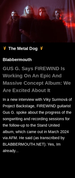 GUS G. Says FIREWIND Is Working On An 'Epic And Massive' Concept Album: 'We Are Excited About It'