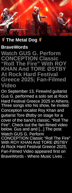 Watch GUS G. Perform CONCEPTION Classic “Roll The Fire” With ROY KHAN And TORE ØSTBY At Rock Hard Festival Greece 2025; Fan-Filmed Video