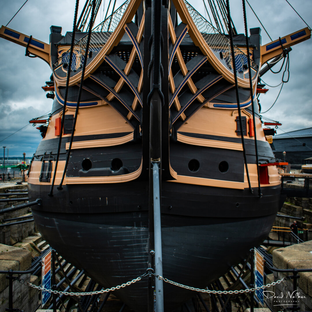 Todays Flickr photo with the most hits: starboard view of the stern of HMS Victory, with cabin windows.