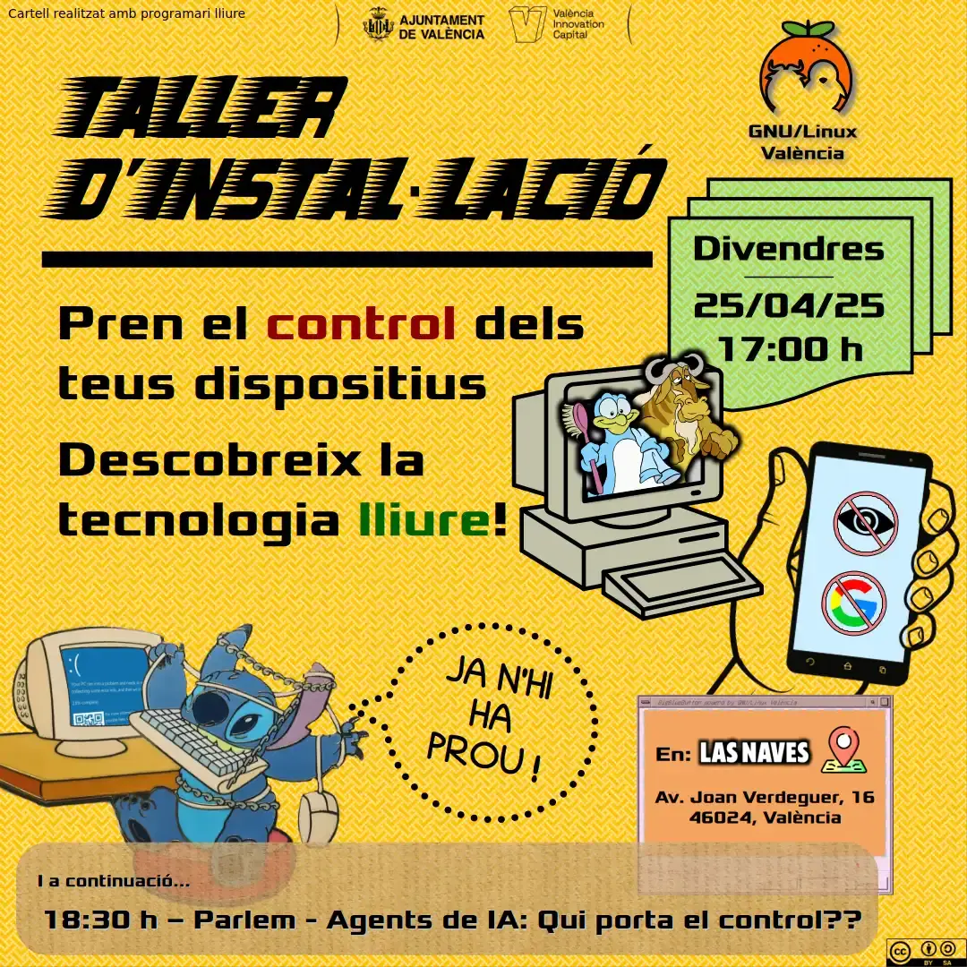 Si usas Windows o MacOS… podrías atreverte a intentar instalar GNU/Linux, quizás en un sistema dual boot… ¡y si no te aclaras te ayudamos! Cada mes hacemos talleres de instalación, o puedes contactarnos de muchas formas. GNU/Linux no defrauda. ¿Qué distribución de GNU/Linux? Si no lo tienes claro, también nos puedes preguntar y te ayudamos a elegir la que mejor se ajusta a ti.