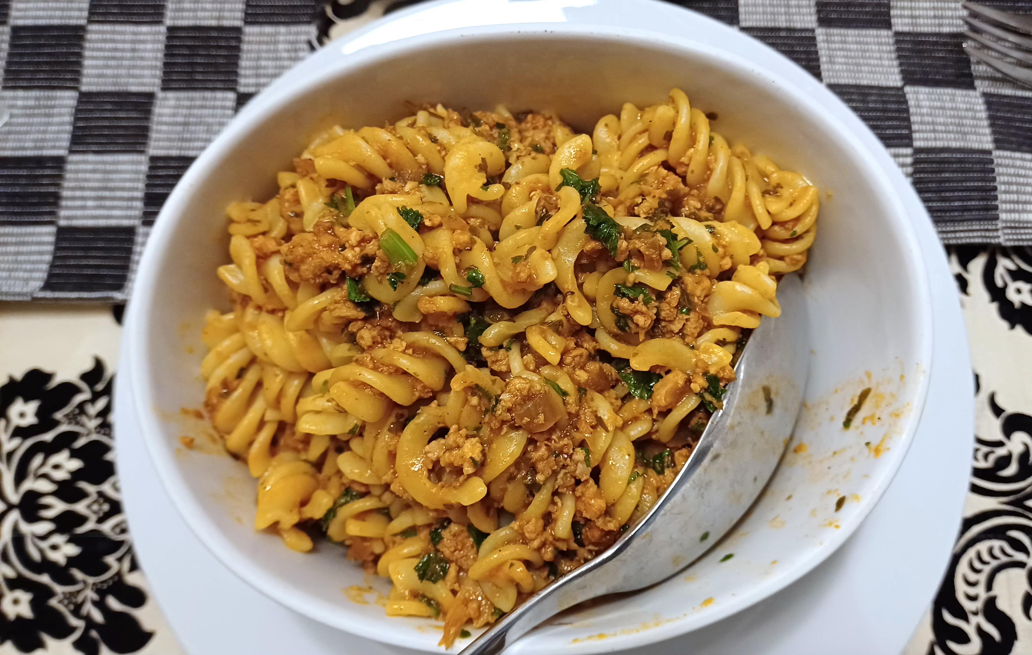 Dazu ein Nostalgiegericht aus der Studentenzeit: #Spiralnudeln ✨️ mit #Hackfleisch. In der damaligen WG war einer,der immer bei ALDI Nähe dem Idunazentrum #UniGÖ 1Tüte Spiralnudeln für 0,79DM holte,wenn er daran war für alle zu kochen.