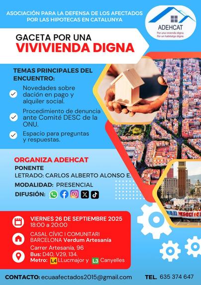 Si quereis aprender a parar un desahucio gracias al Comite DESC de la ONU, o saber cositas de la dacion en pago y el alquiler social hoy doy charla para ADEHCAT en #Barcelona #hipotecas #desahucios #vivienda #formacion