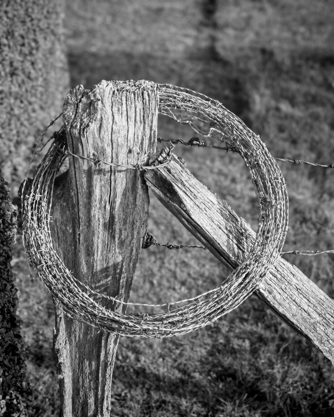 237/366 Stacheldraht auf Zaunpfahl