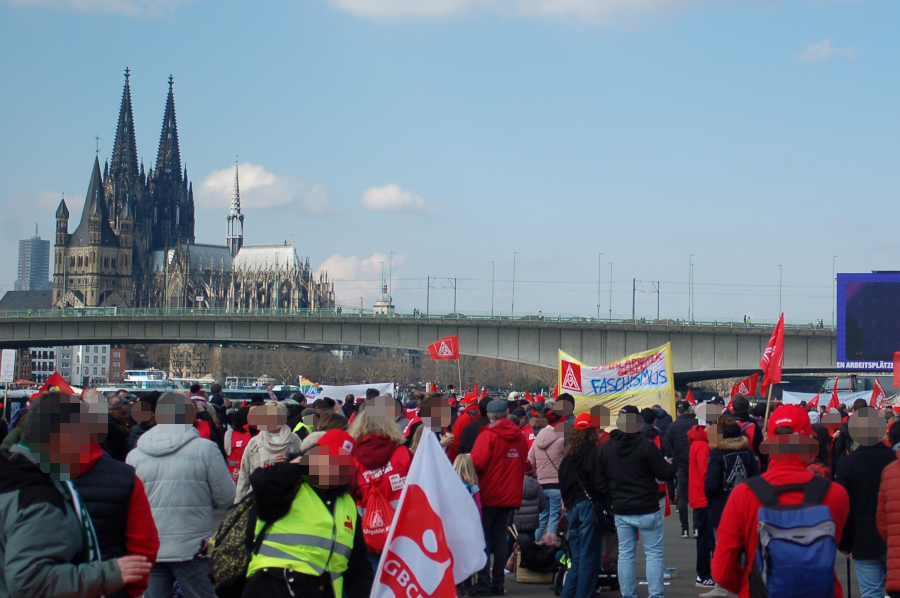 In Köln fand am 15.03. gleichzeitig auch eine Großkundgebung der IG Metall statt, bei der die reformistische #Gewerkschaft gegen #Massenentlassungen in der rezessionsgeplagten Metall- und Elektroindustrie protestierte.