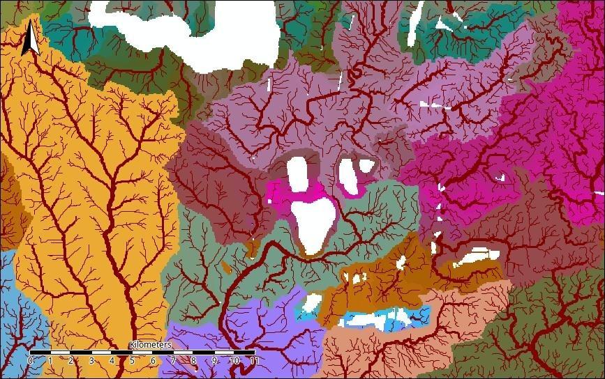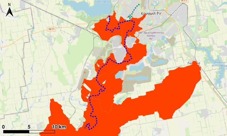 All calculations were performed within the polygon of the effective catchment area of the Inhulets River.