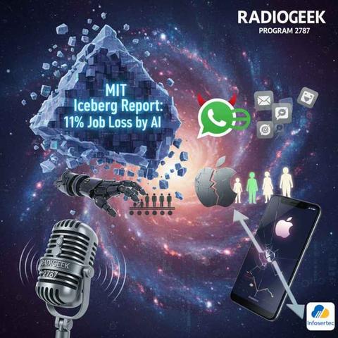 El programa 2787 de Radiogeek, les habló de varios temas importantes. Hoy abordamos el tema complejo en donde la IA puede llegar a quitar gran cantidad de puestos laborales, y esto se desprende de el informe Iceberg que realizó el MIT en Estados Unidos, donde se analizó la temática brindando el alarmante número de 11% de empleados que podrían perder su trabajo en dicho país; luego les hablo de como Meta quiere expulsar a todos sus competidores en WhatsApp, seguido de que Apple está despidiendo trabajadores antiguos y contratando nuevos de forma externa y como para terminar, les cuento como Samsung esta perdiendo el liderazgo de smartphone de la mano de la nueva línea de iPhone 17.