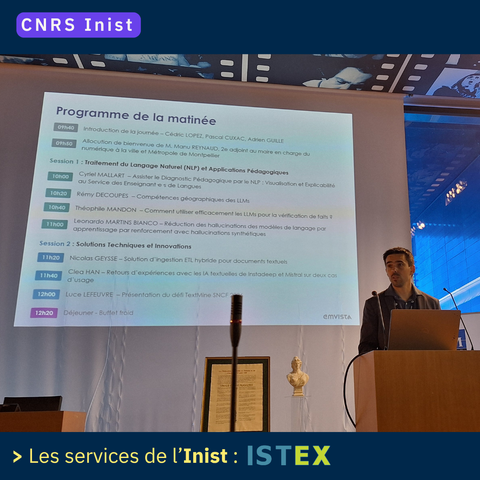 À Grenoble, lors de la conférence « Mathdoc : 30 années au service de la communauté mathématique », Nicolas Thouvenin (Inist-CNRS) a présenté ISTEX et ses usages en fouille de texte basée sur l’IA.