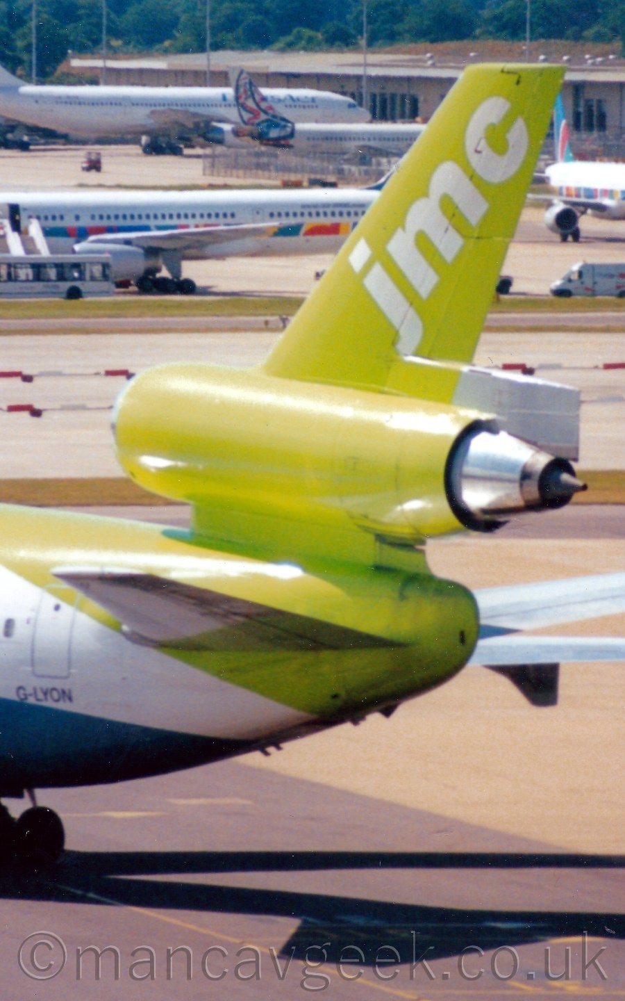 G-LYON, Douglas DC-10-30, JMC Air, being pushed back from it's stand at London Gatwick, 2000 or 2001.