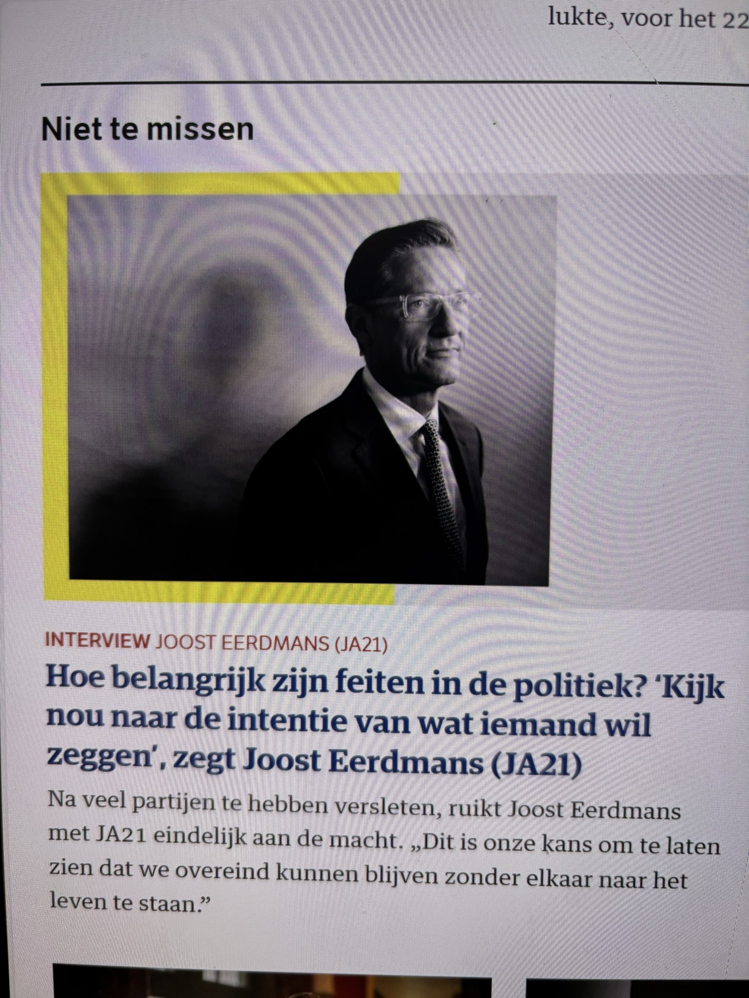 [Bovenaan foto van Joost Eerdmans met sjaal en winterjas]