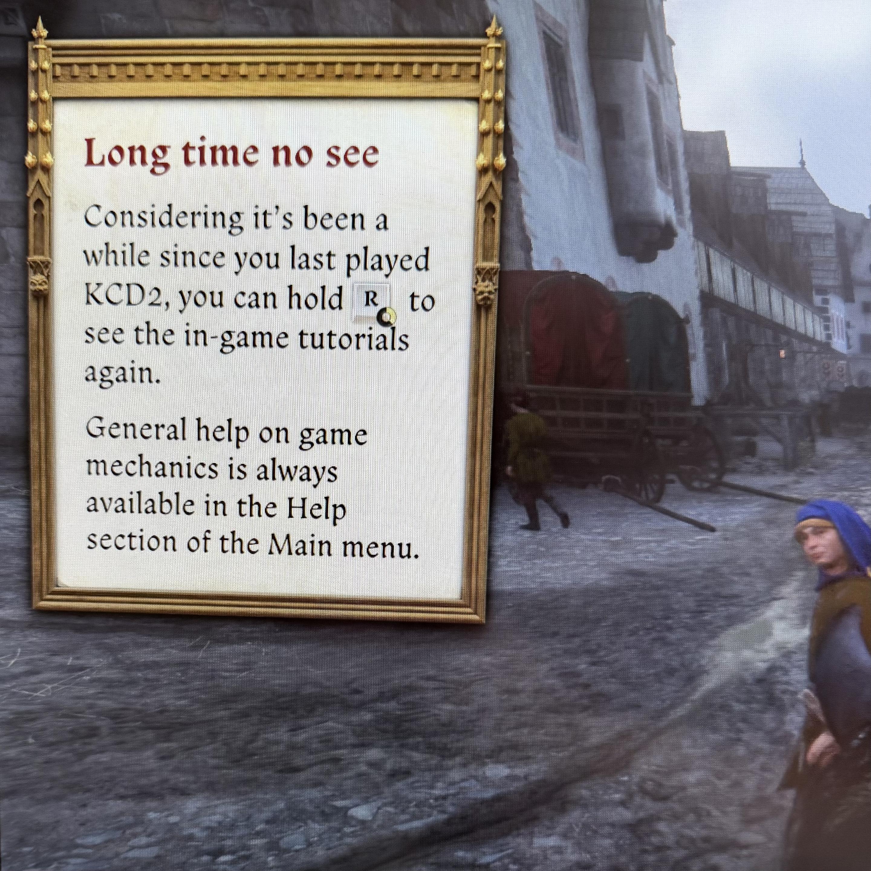 Considering it’s been a while since you last played KCD2, you can hold R to see the in-game tutorials again.
