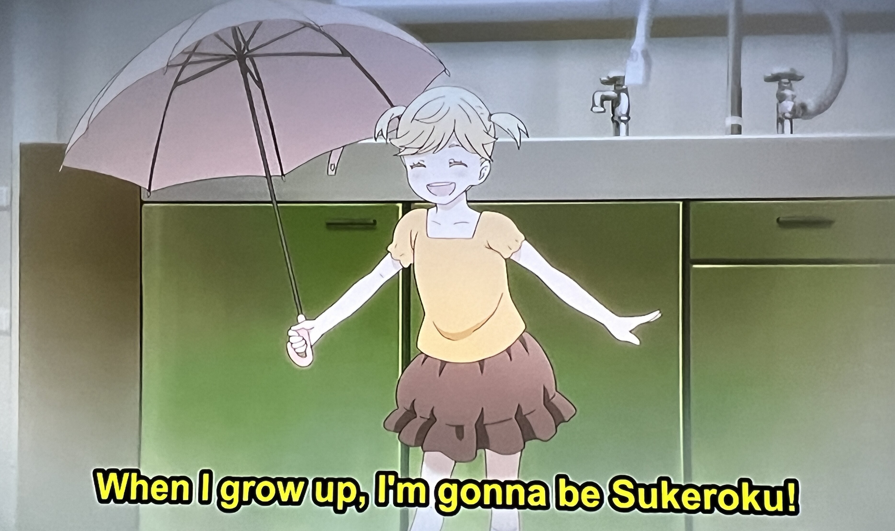 Got an #AnimangaFoundIt for this week! No rain, but Sarasa from #KagekiShoujo holding an umbrella.