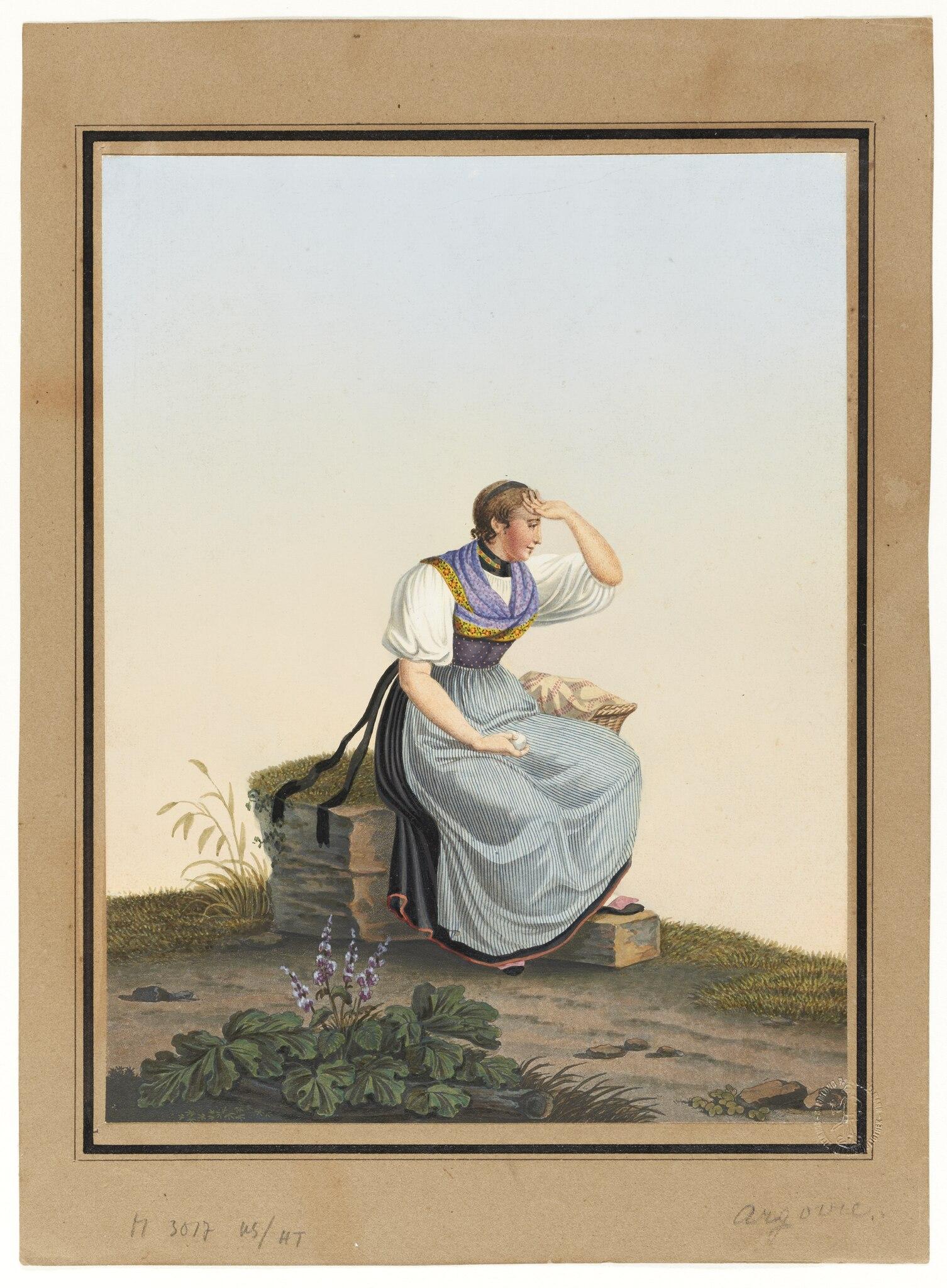 Wikimedia Commons, Schweizerische Nationalbibliothek, Johann Emanuel Locher, https://commons.wikimedia.org/wiki/File:CH-NB_-_Trachten_Bern,_Mittelland,_Lotzwil_-_Collection_Gugelmann_-_GS-GUGE-LOCHER-JE-5-16.tif