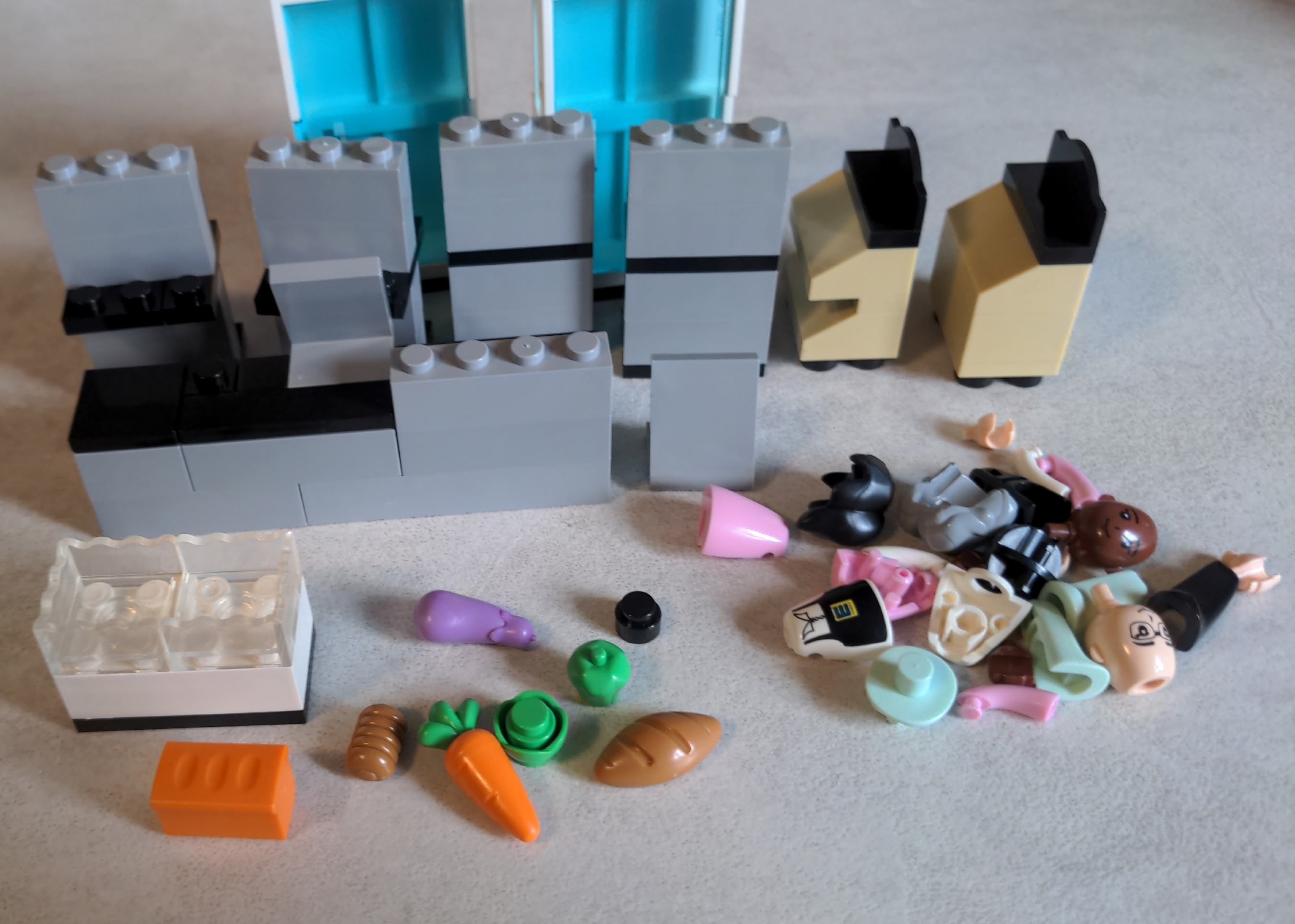 - Das Hellgrau ist deutlich besser als beim Kassenset, allerdings haben ausgerechnet die Fliesen für die Front krasse Abweichungen. Auch die Rahmen für den Auflieger sind nicht perfekt (gelblicher Einschlag), hier muss man es aber eigentlich wissen um das zu sehen.