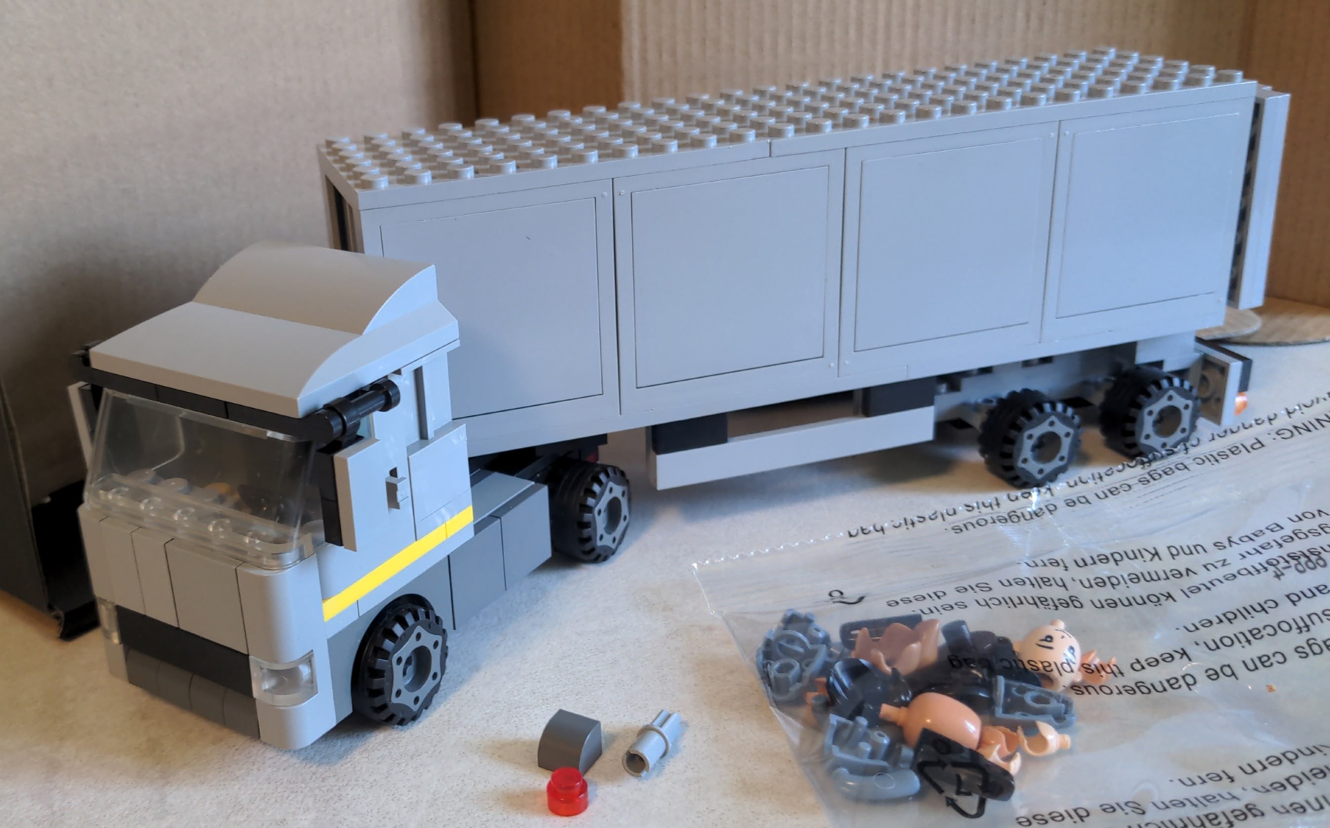 - Ich habe die Kupplung am Auflieger um eine Noppe nach hinten versetzt, damit er näher an das Führerhaus heran rückt.