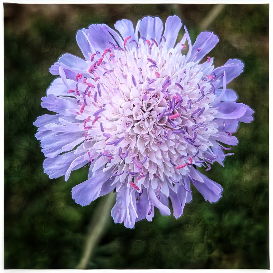HI fam, have a fulfilling day! #BloomScrolling, #FlowersOfBluesky: #meadowsweet #flower, #KnautiaArvensis, #Wiesenwitwe ("meadow widow" in German) #SummerVibes #SharingIsTheNewLearning #Macrophotography #PhotographyIsArt