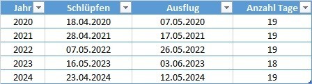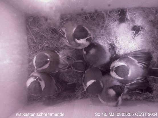 7 #Kohlmeisen haben heute den Nistkasten verlassen. Die Statistik der letzten 5 Jahre zeigt, dass zwischen Schlüpfen und Ausflug ziemlich genau 19 Tage liegen. #Meisen #Nistkasten