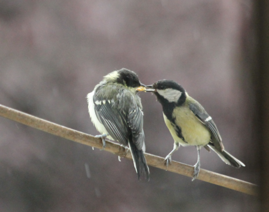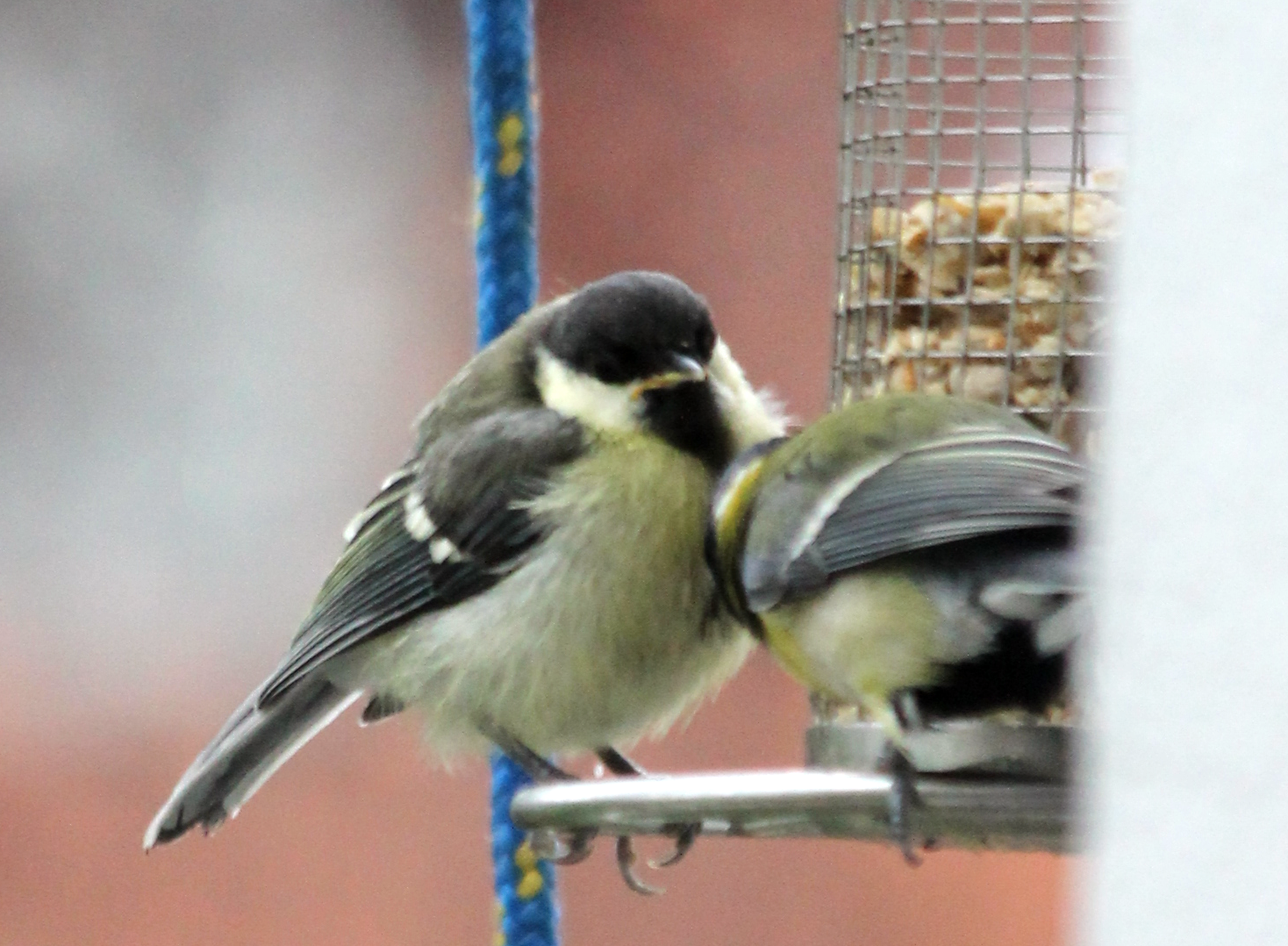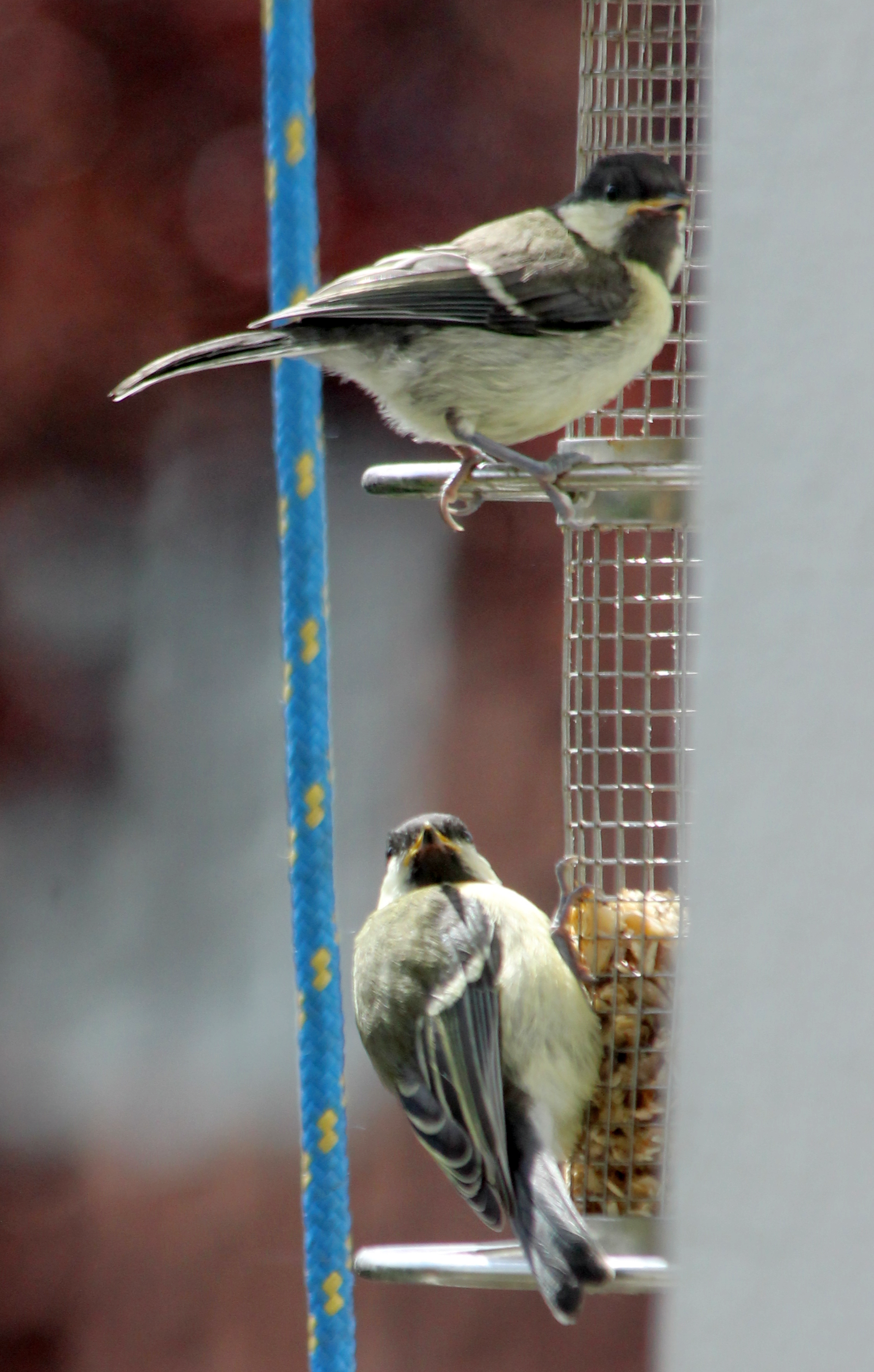 So groß sind die Kleinen schon. Anfang der Woche haben sie noch auf dem Feeder gesessen und Mama oder Papa angebettelt; heute Morgen sind sie erwachsen genug, ganz alleine zu fressen.