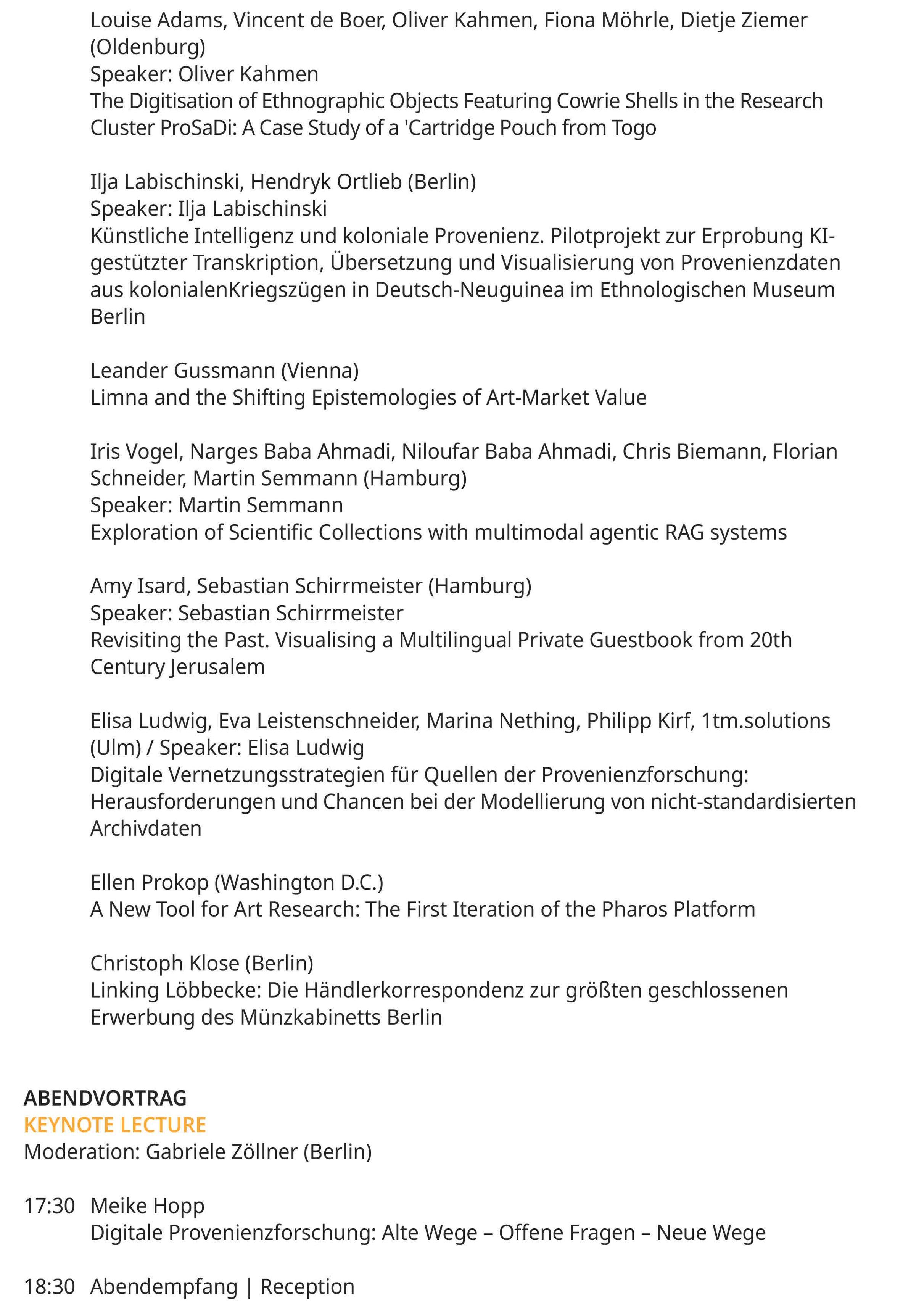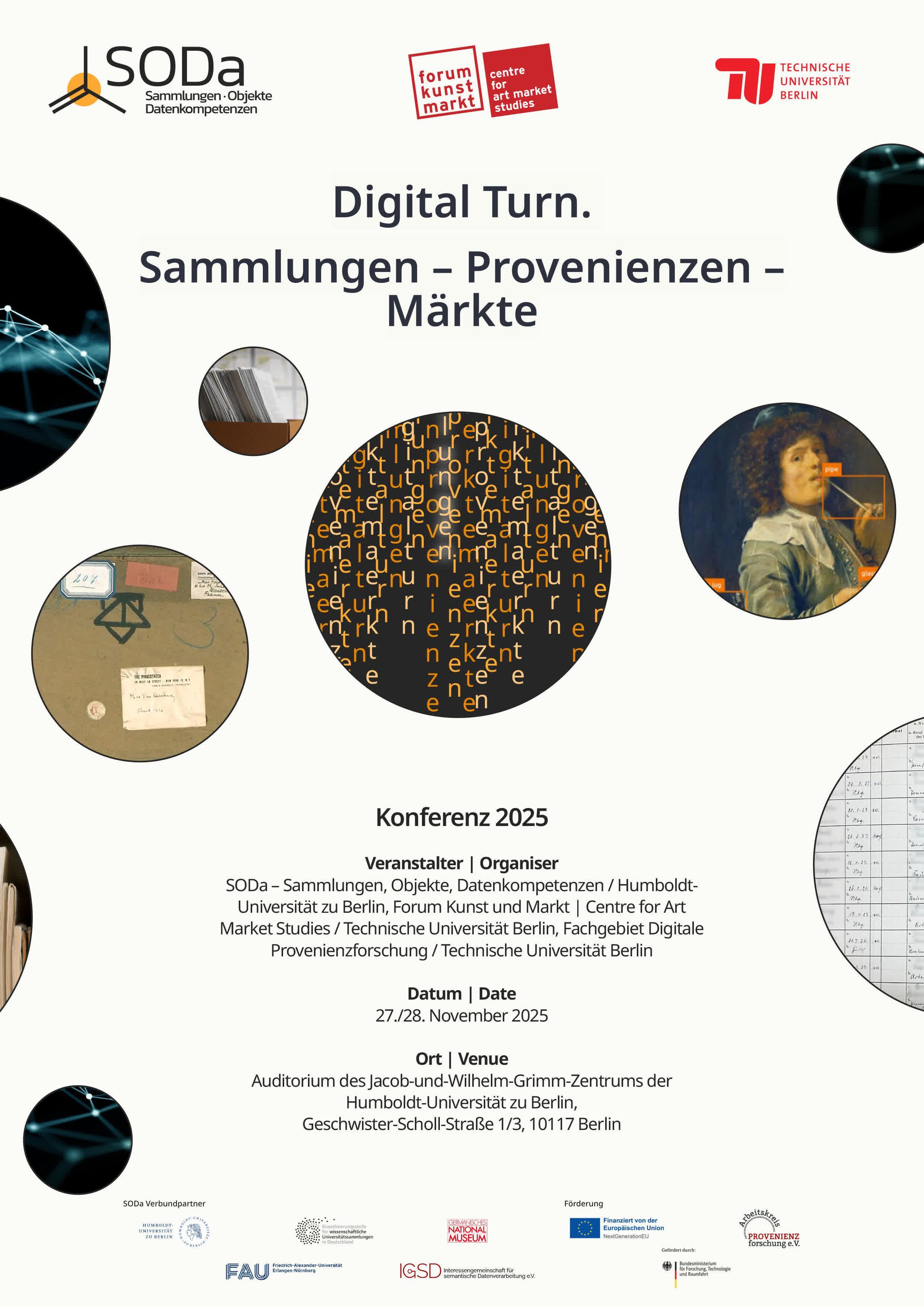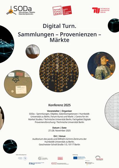 Forschende sowie Expert*innen aus Data Science & GLAMs diskutieren, wie Big Data, digitale Methoden & KI Provenienz-, Sammlungs- und Kunstmarktforschung verändern. Die Tagung ist ausgebucht – Beiträge erscheinen offen in der Zenodo Community: https://zenodo.org/communities/digital-turn/records?q=&l=list&p=1&s=10&sort=newest