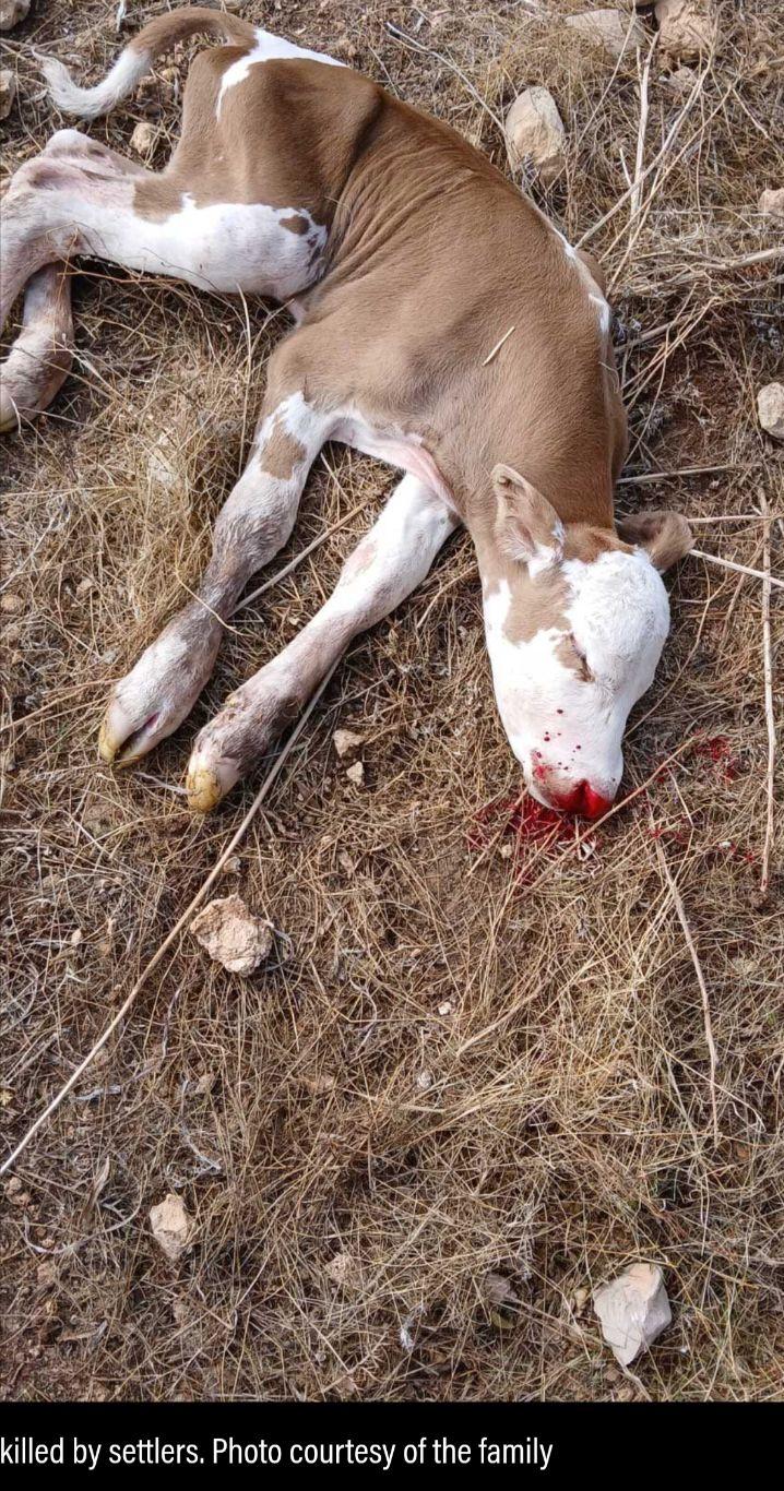 The calf killed by settlers. Photo courtesy of the family