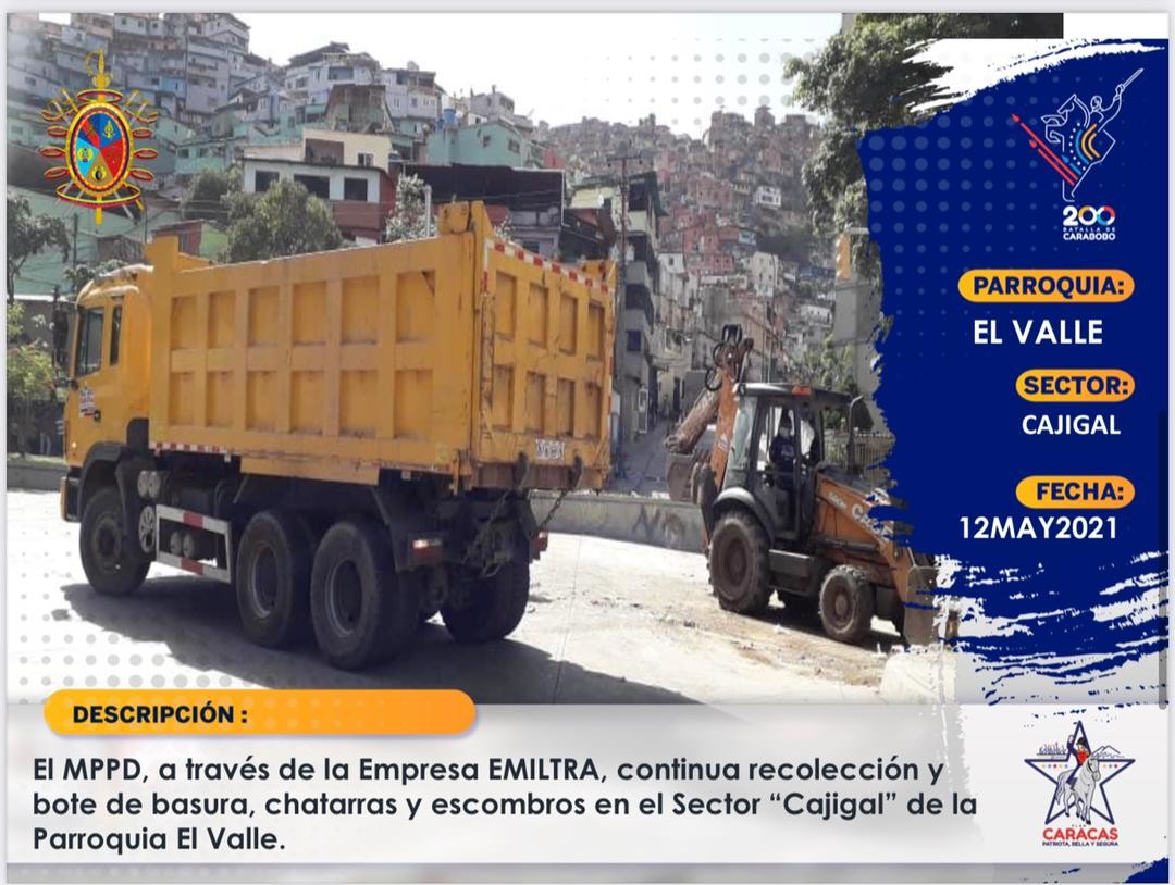 #IMPORTANTE || Uno de los objetivos del plan #CaracasPatriotaBellaYSegura es mantener una ciudad limpia. La #FANB en unión con el Pueblo realizan trabajos de recolección de basura y desechos sólidos.