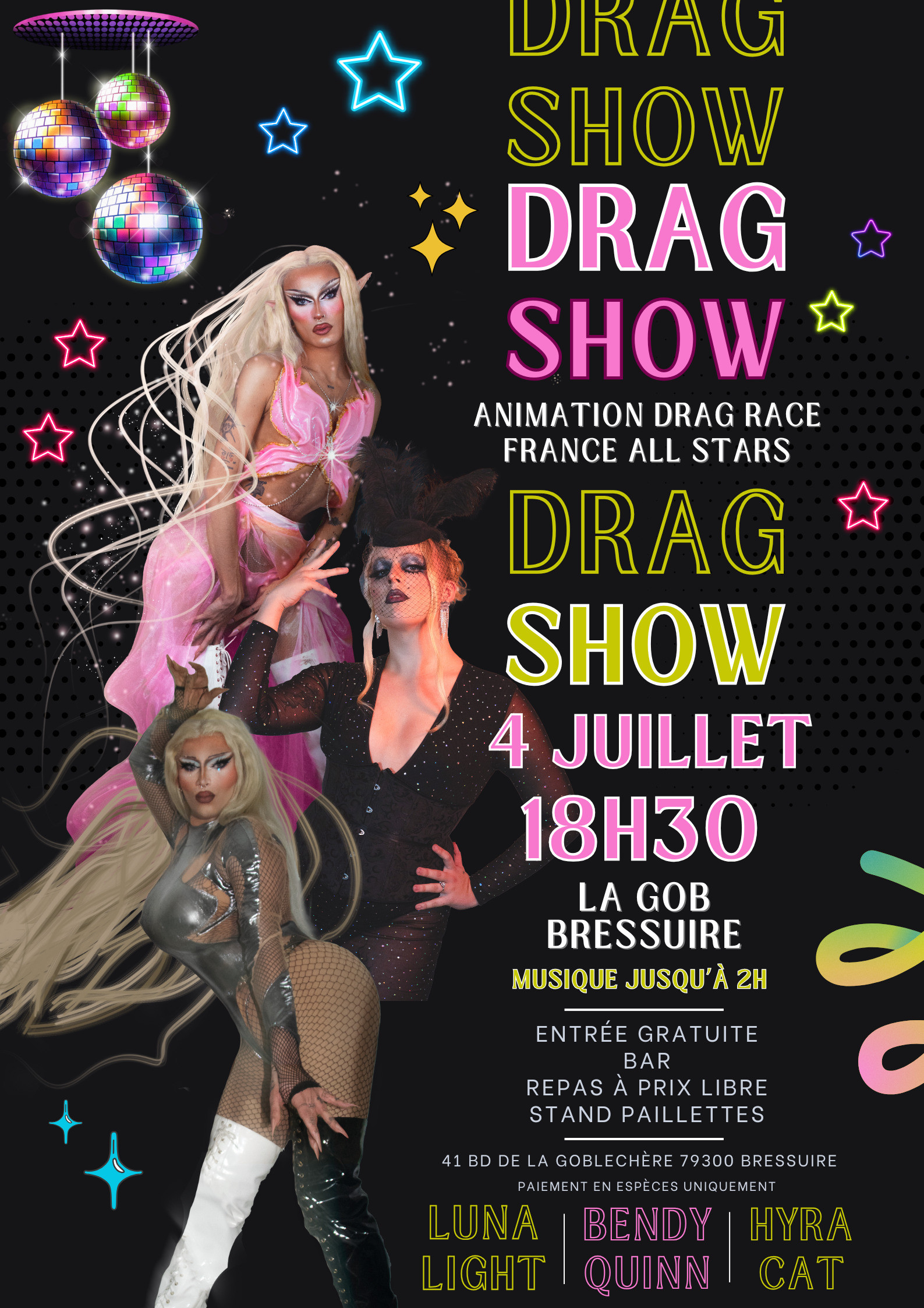 Drag show à la Gob, vendredi 4 juillet à partir de 18H30.