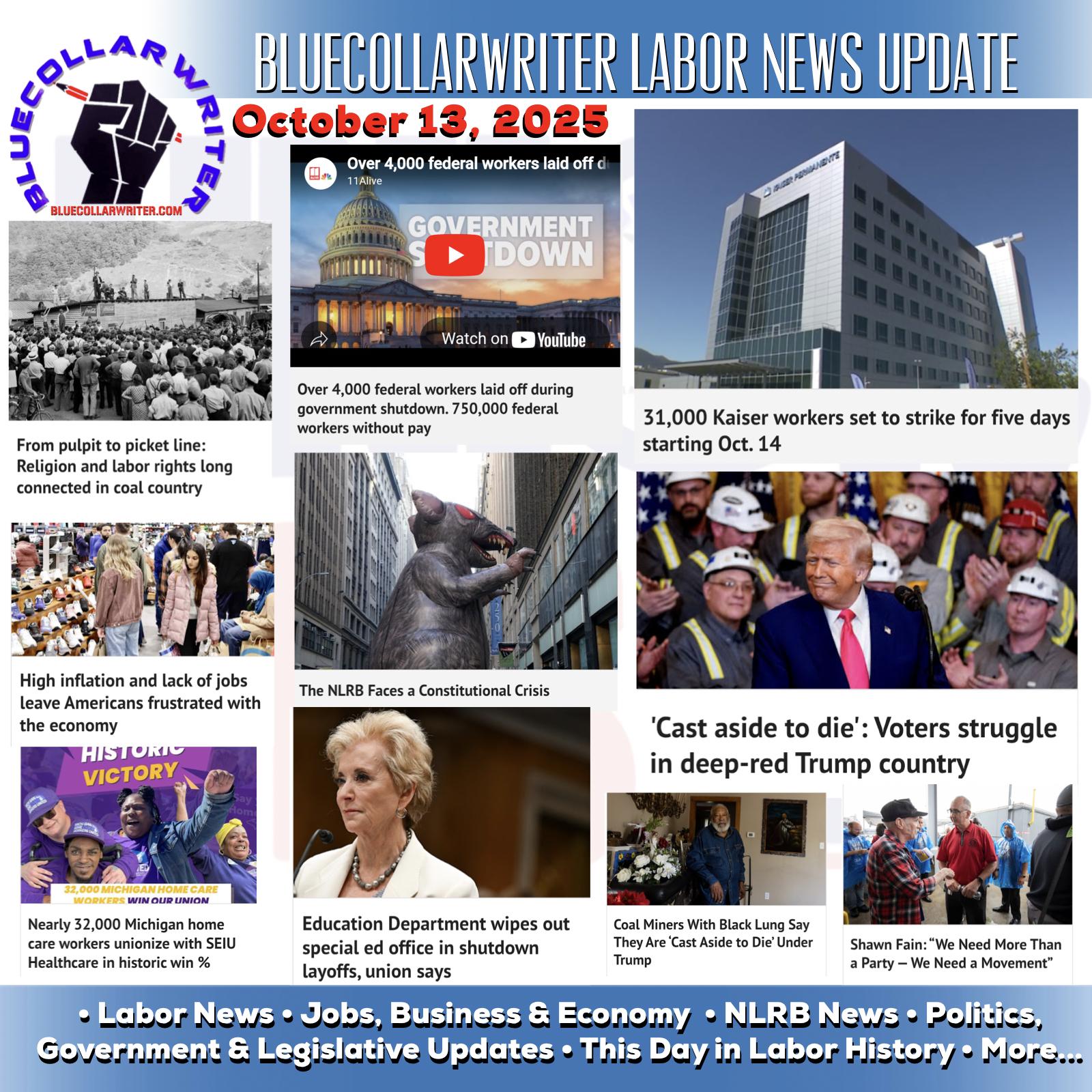 #BlueCollarWriter Labor News Update - October 13, 2025: